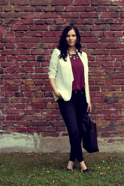 May I introduce, that is my current favorite outfit. It consists of tight jeans, airy T-shirt and bright blazer.