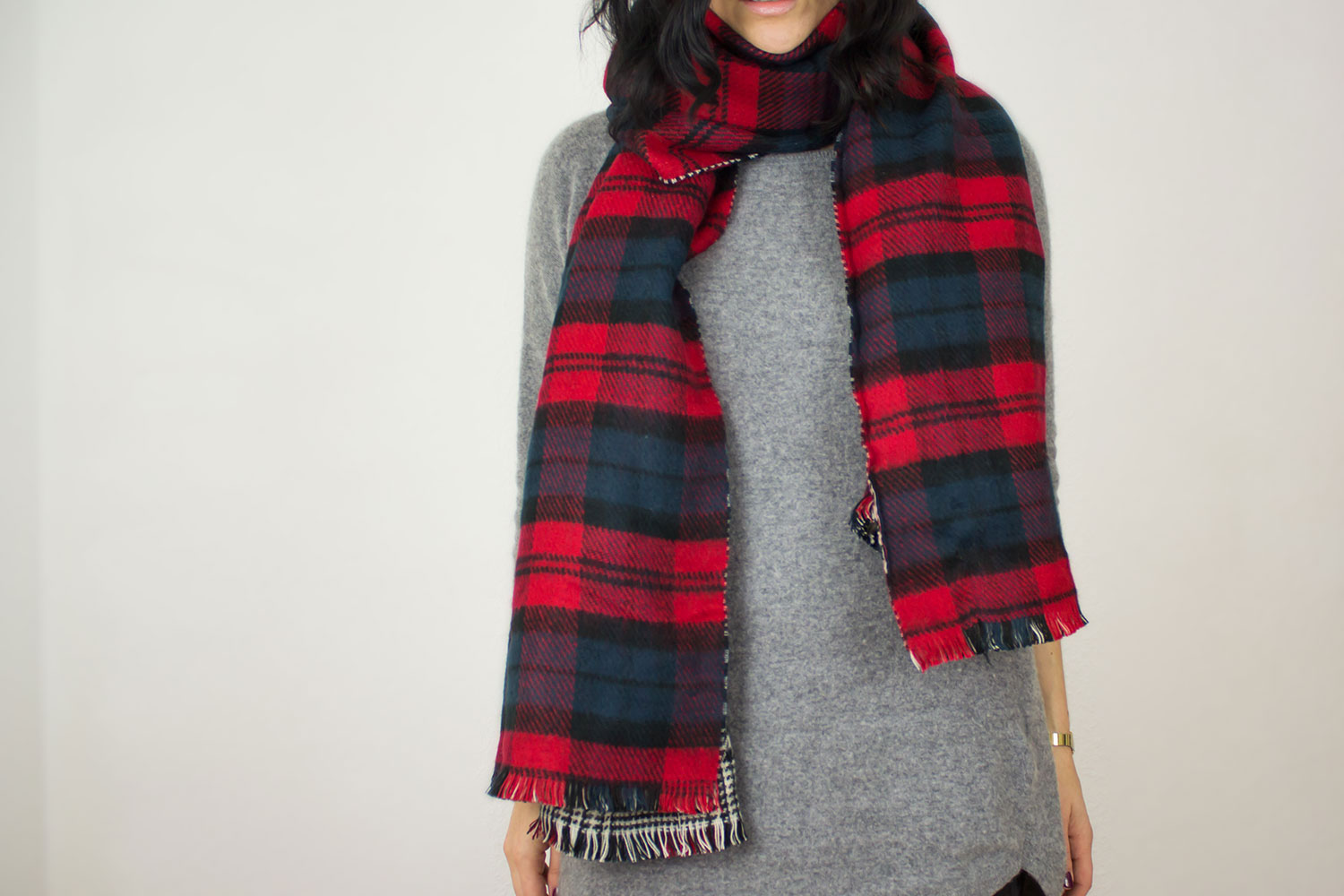 Ich trage das Karomuster am liebsten zu gemütlichem Pullover, enger Hose und hohem Schuh. Der heißbegehrte Zara Schal bildet hier die perfekte karierte Ergänzung und wertet mein schlichtes Outfit optisch auf. Das gute an dem Wendeschal: ich kann je nach Lust und Laune tragen oder sogar in Musterkombination um meinen Hals baumeln lassen.