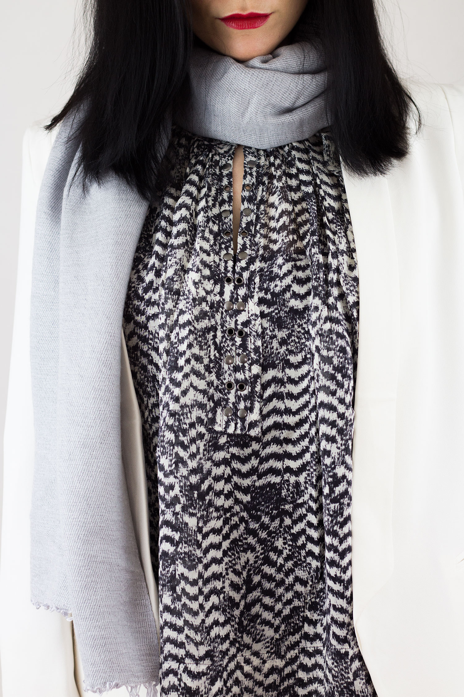 // Bluse – Isabel Marant Pour H&M // Blazer – H&M // Schal – H&M // Leggings – Gina Tricot // Schuhe – OSCO // Lippenstift – Russian Red MAC // Nagellack – Bahama Mama Essie //