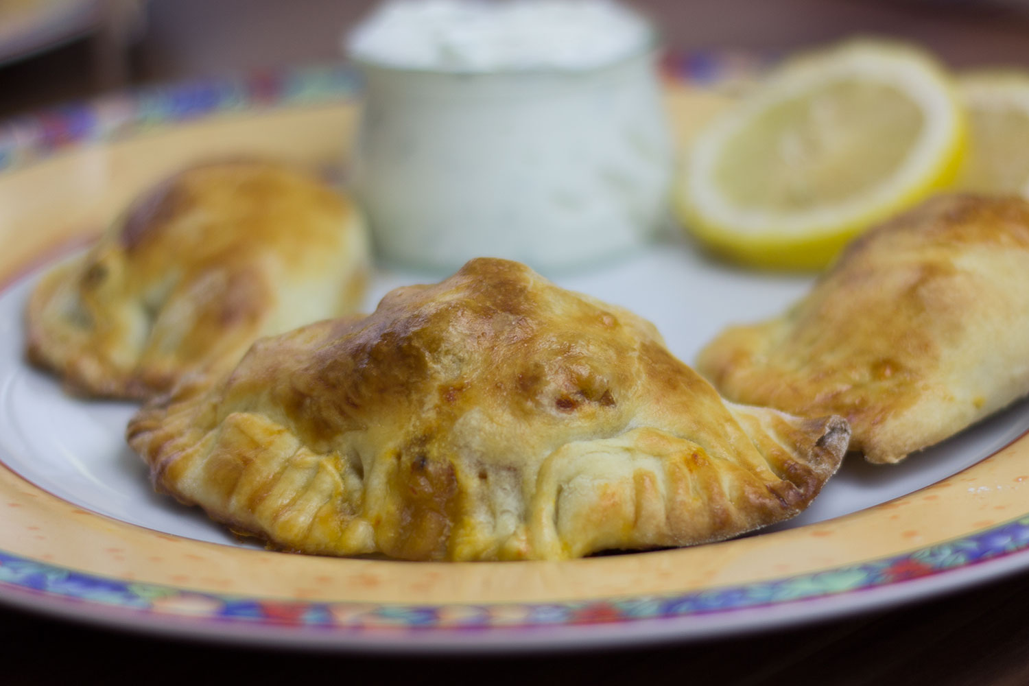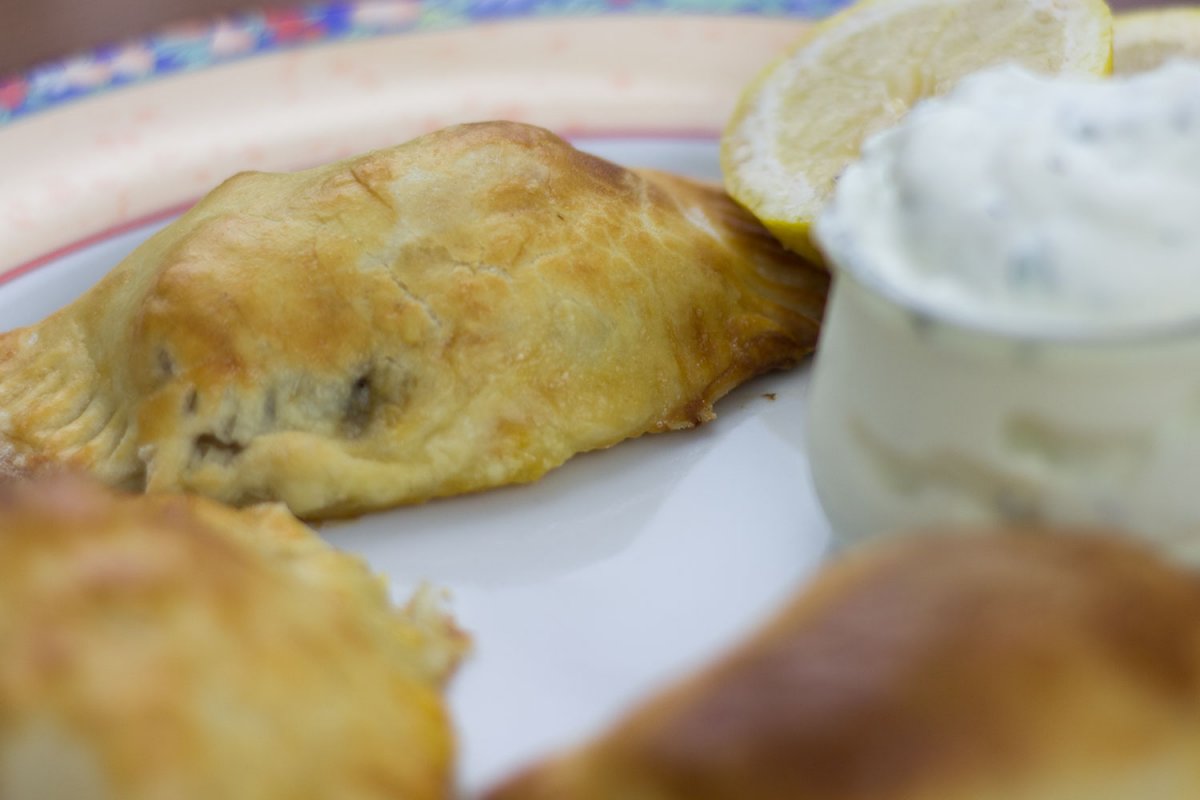 Ich esse gerade meine ersten selbst gebackenen Empanadas. Diese 10 cm kleinen Teigtaschen sind so unheimlich lecker und dazu noch vegetarisch. Am liebsten genieße ich sie mit etwas Zitrone beträufelt und einem leckeren Dip.
