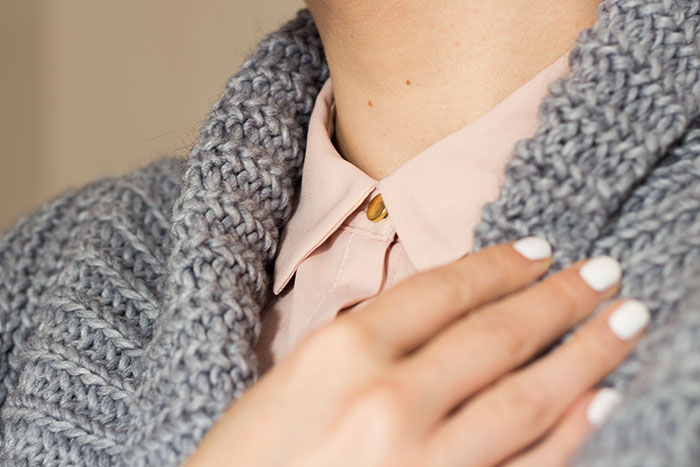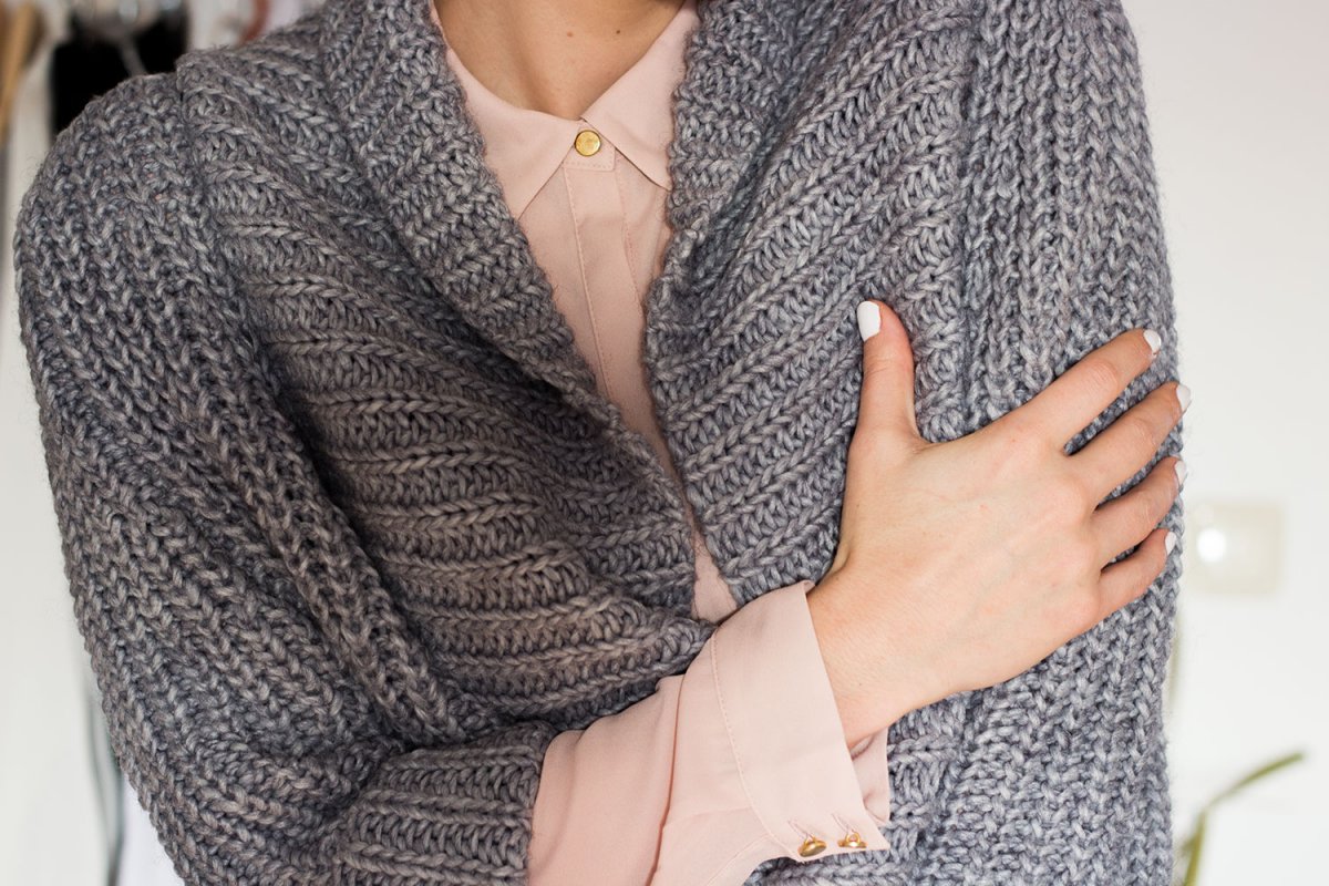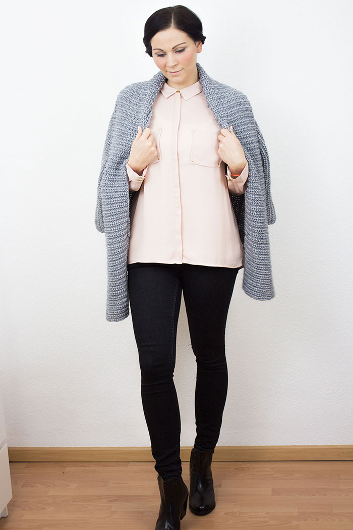 Im hektischen Alltag mag ich es gerne gemütlich und deshalb greife ich zum Cardigan. Vor allem im Winter ist die grobgestickte Jacke mein ständiger Begleiter. Mein Schrank ist voll von übergroßem Strick, von Weiß bis Schwarz ist alles vertreten. Doch in Kombination mit Rose habe ich Strick noch nie getragen.