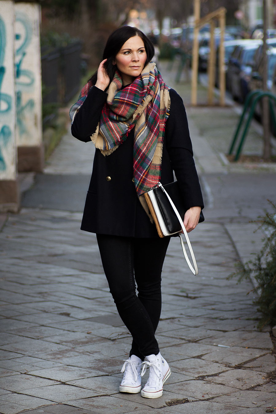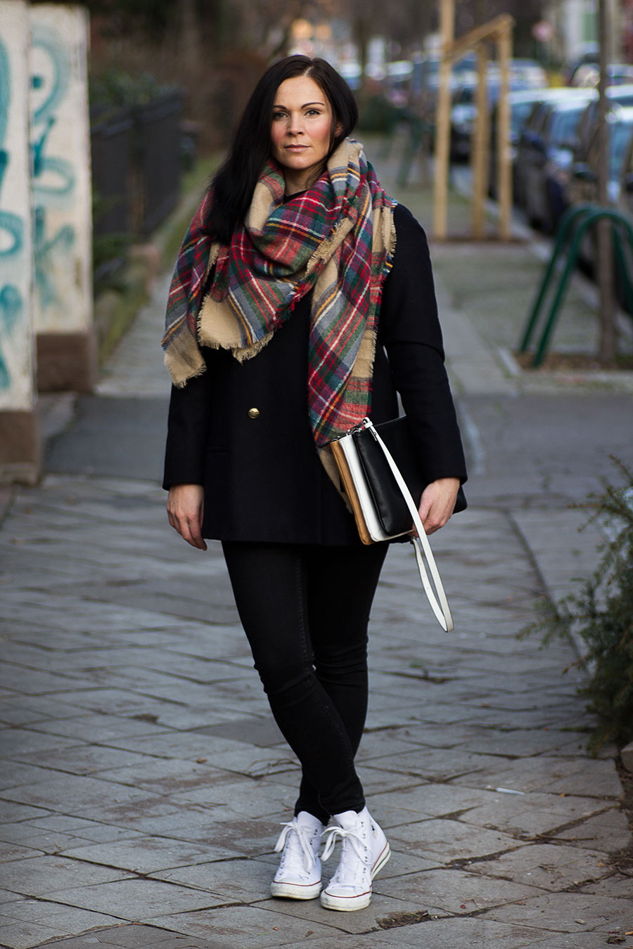// Mantel – Zara // Jeams – Gina Tricot // Schuhe – Converse // Tasche – Zara // Tuch – Zara //