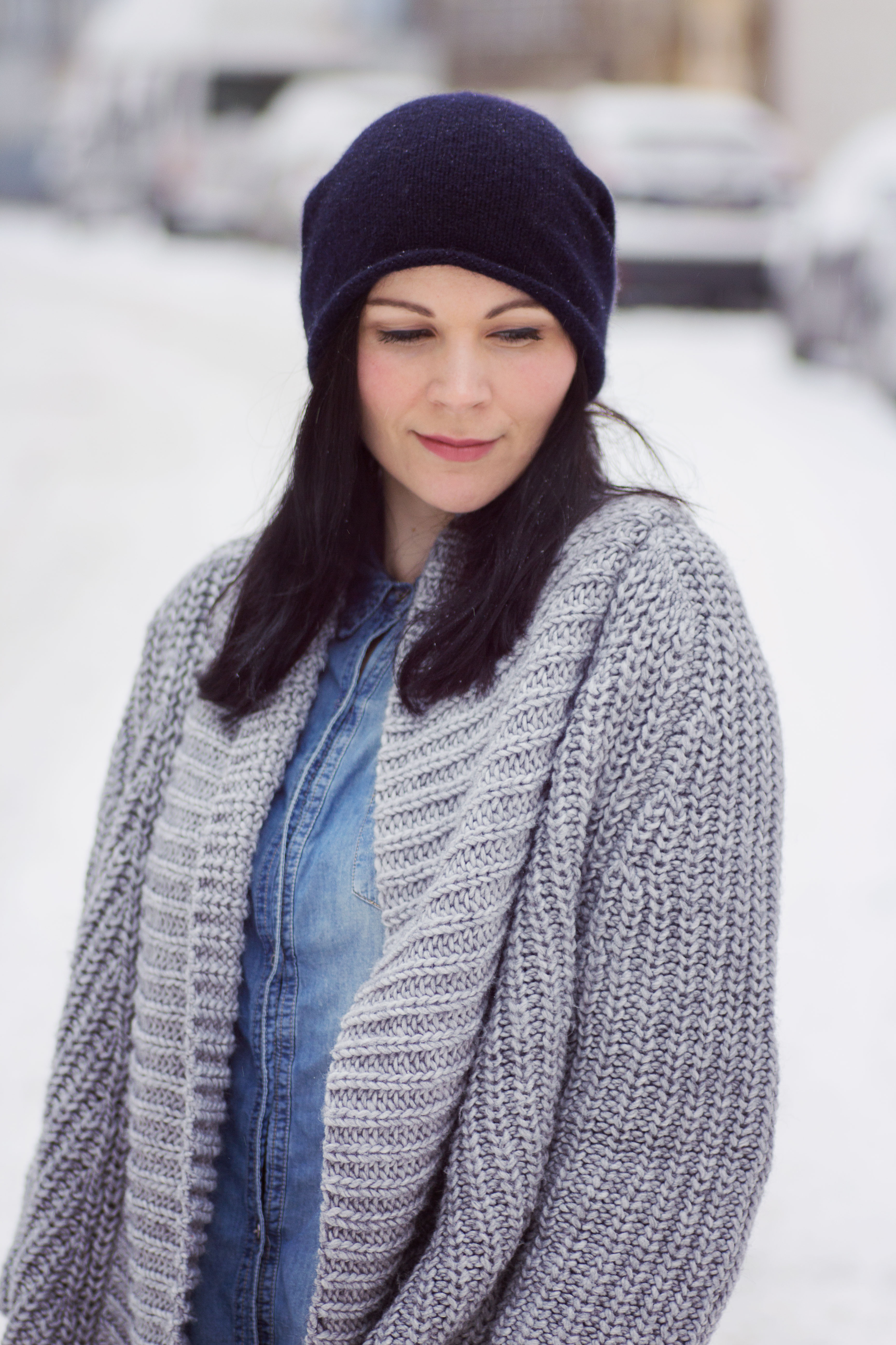 Aber nicht nur auf dem Kopf, sondern auch als Schal um den Hals ist Cashmere ein toller Begleiter durch die kühlen Wintermonate und passt perfekt zu meinem Look in dickem Strick. Und für alle die ihren perfekten Schal noch nicht gefunden haben, habe ich einen kleinen Tipp: schaut mal bei Repeat cashmere vorbei, dort bekommt ihr einen Woche lang einen Pashmina Schal zu jedem Einkauf gratis dazu.