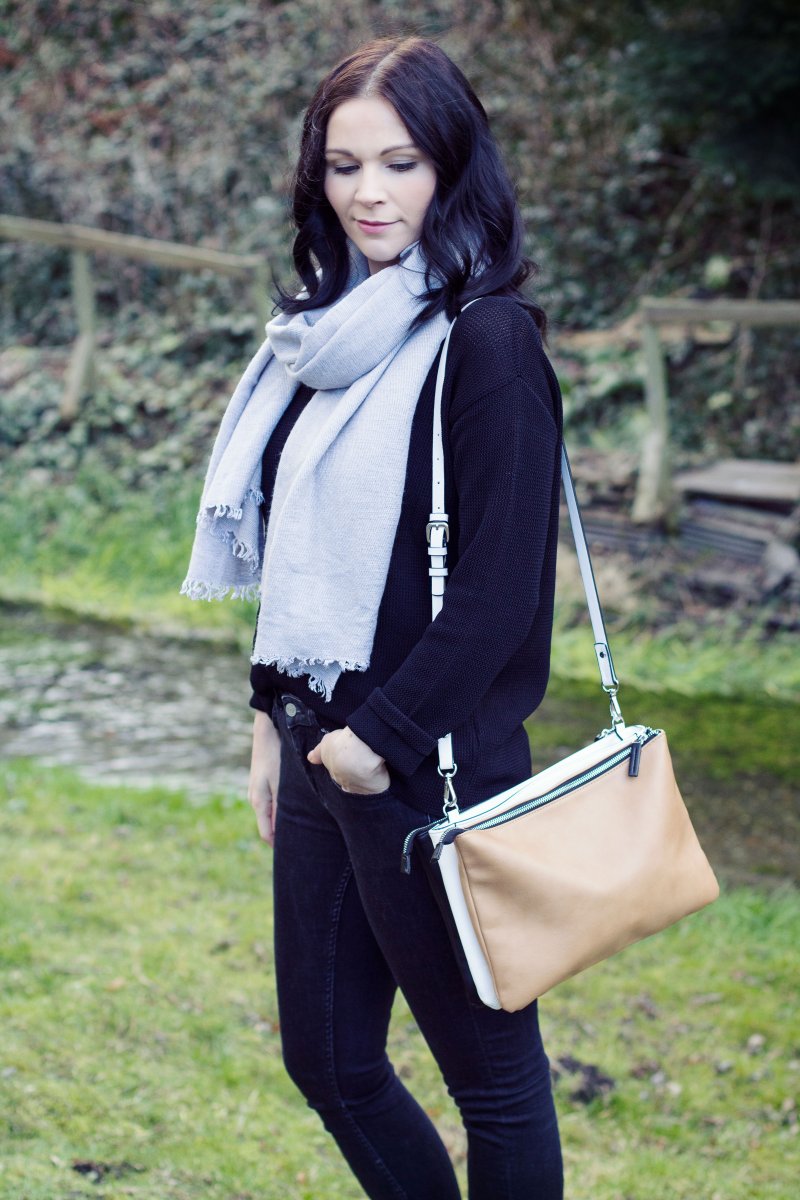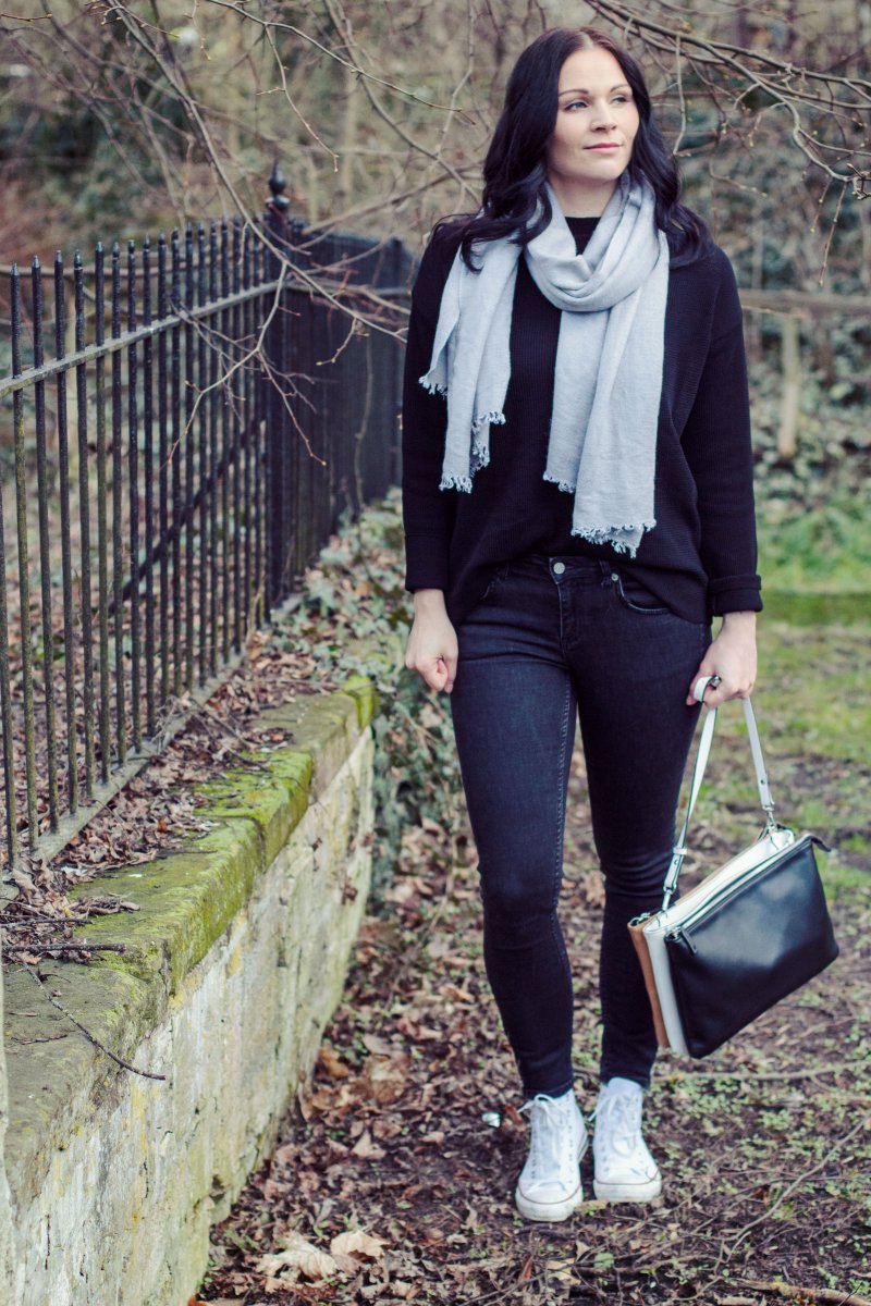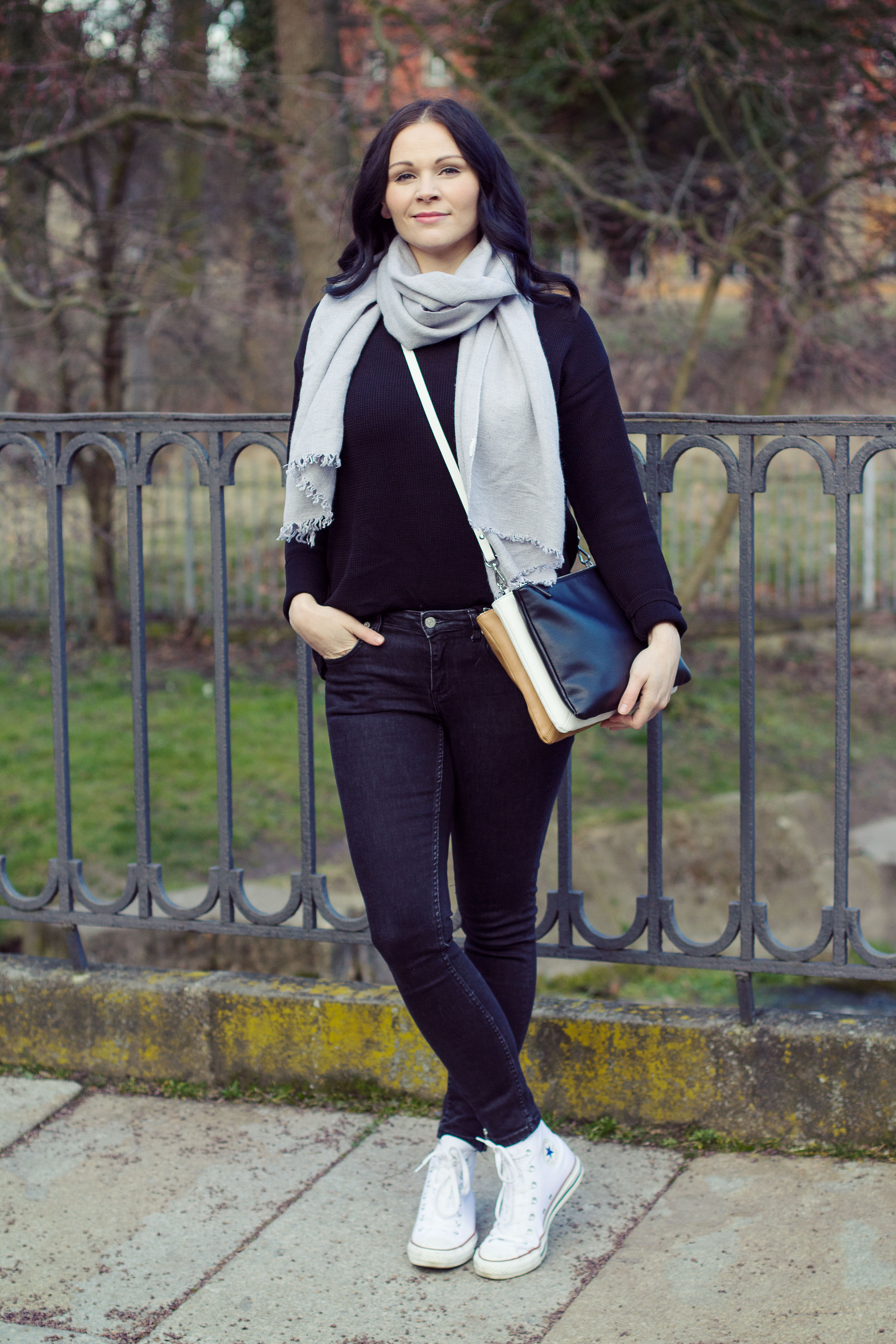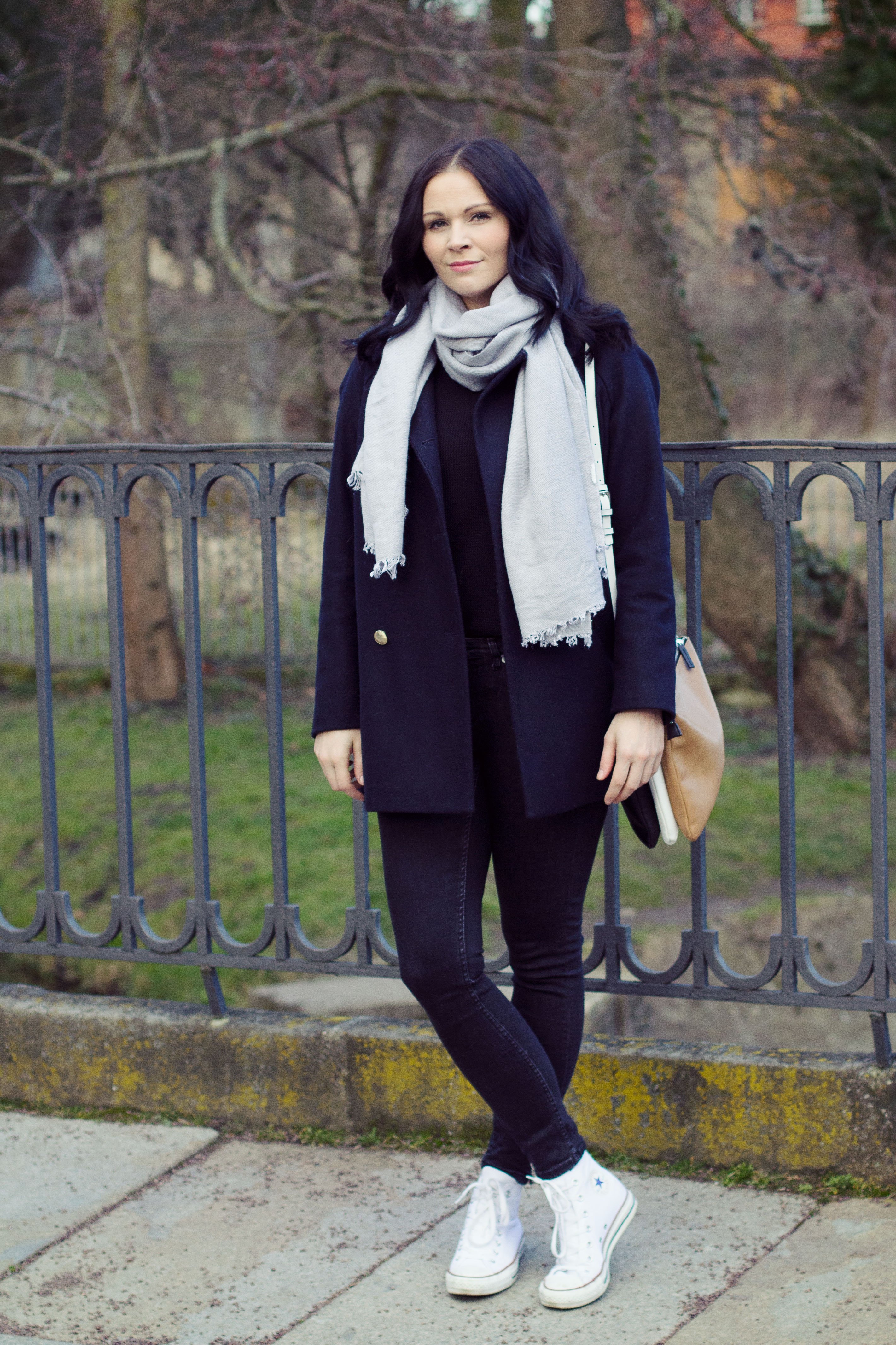 //Mantel – Zara // Pullover – Zara // Jeans – ginatricot // Schuhe – Converse via Asos // Tasche – Zara // Schal – H&M //