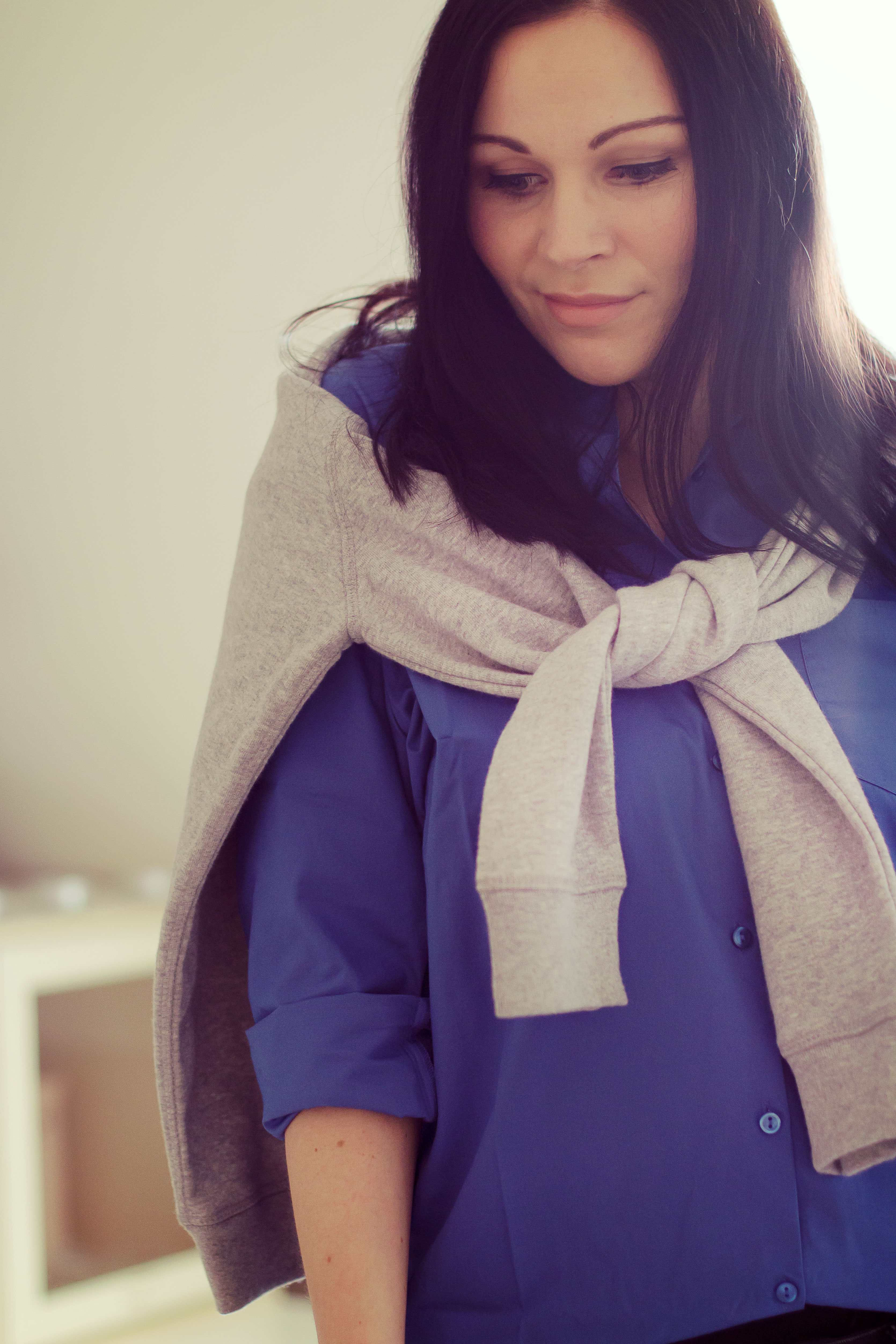 Der Klassiker schlechthin ist die langärmlige Bluse, die je nach Jahreszeit auch mal hochgekrempelt getragen wird. Sie ist ein Allrounder und passt einfach zu jeder Gelegenheit. Farblich bewege ich mich derzeit zwischen Blau und Weiß, aber auch die bedruckte Blusen-Variante gefällt mir äußerst gut.