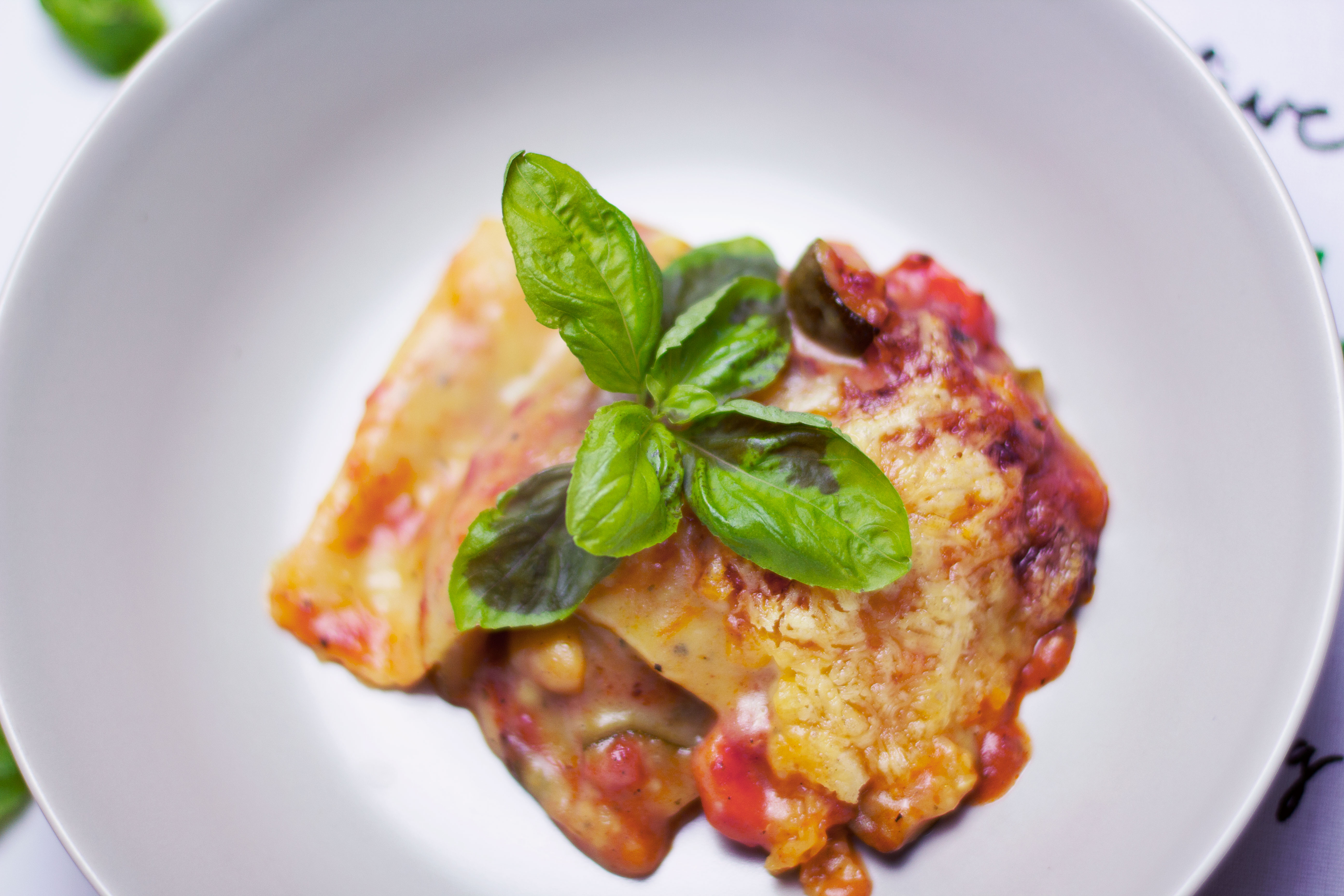 Die Lasagne mit einer Schicht Lasagneblätter und Béchamelsoße abschließen. Dabei müsst ihr darauf achten, dass die Lasagneblätter gut mit Soße bedeckt sind, damit sie nicht austrocknen. Mit geriebenem Käse eurer Wahl bestreuen und die Auflaufform auf die mittlere Schiene des Backofens schieben. 40 – 60 Minuten backen, bis die Lasagne goldbraun ist. Kurz abkühlen lassen und mit Basilikum dekorieren.