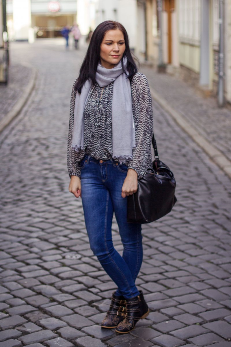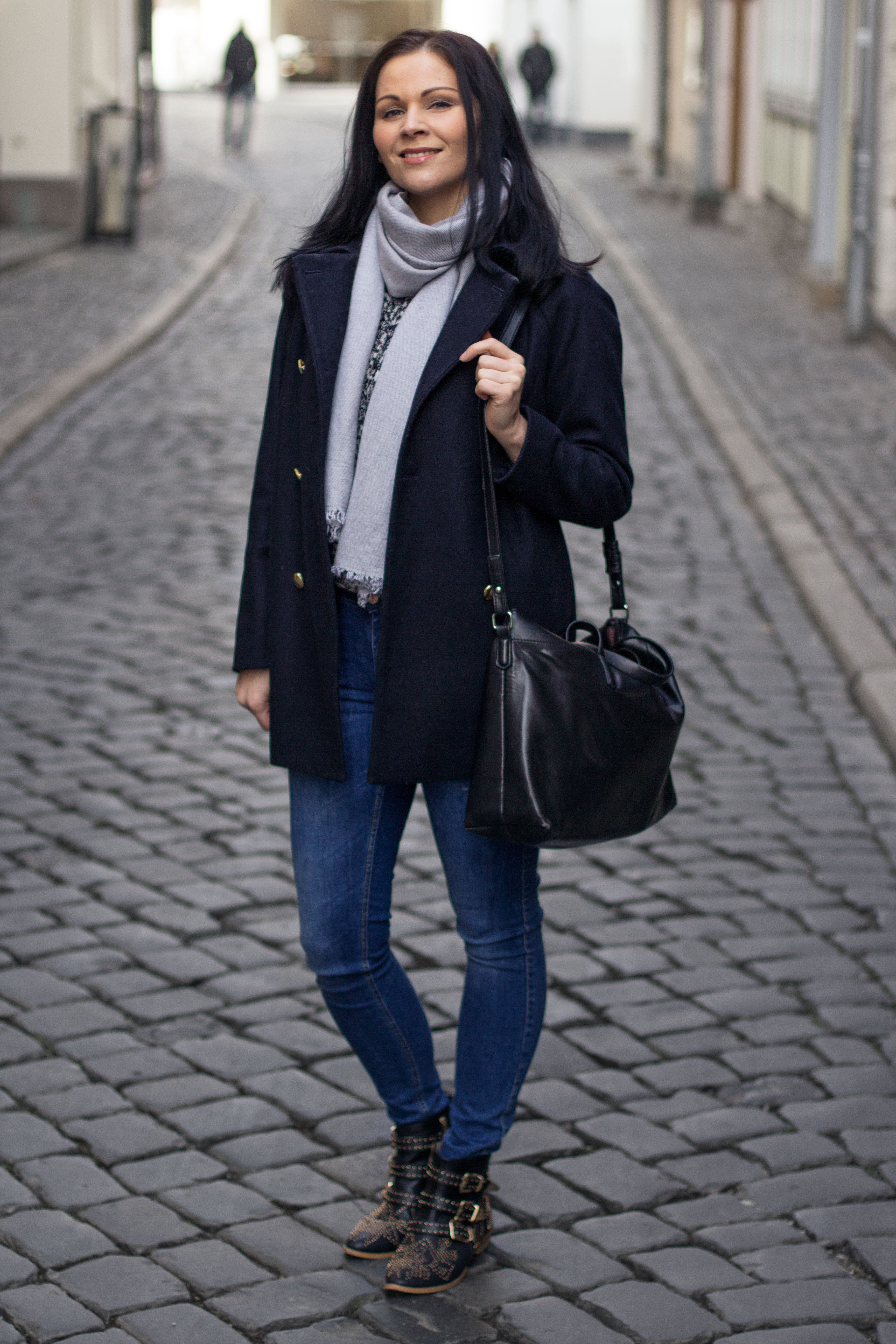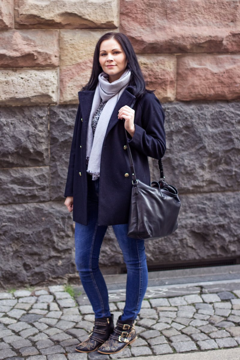 // Mantel – Zara // Bluse – Isabel Marant for H&M // Jeans – Ginatricot // Schuhe – Schuhtempel24 // Tasche – Zara // Schal – H&M //