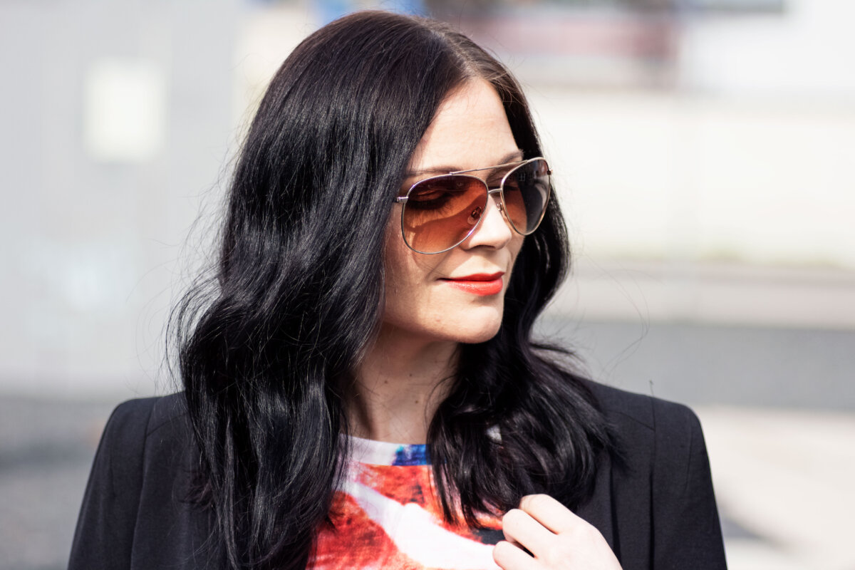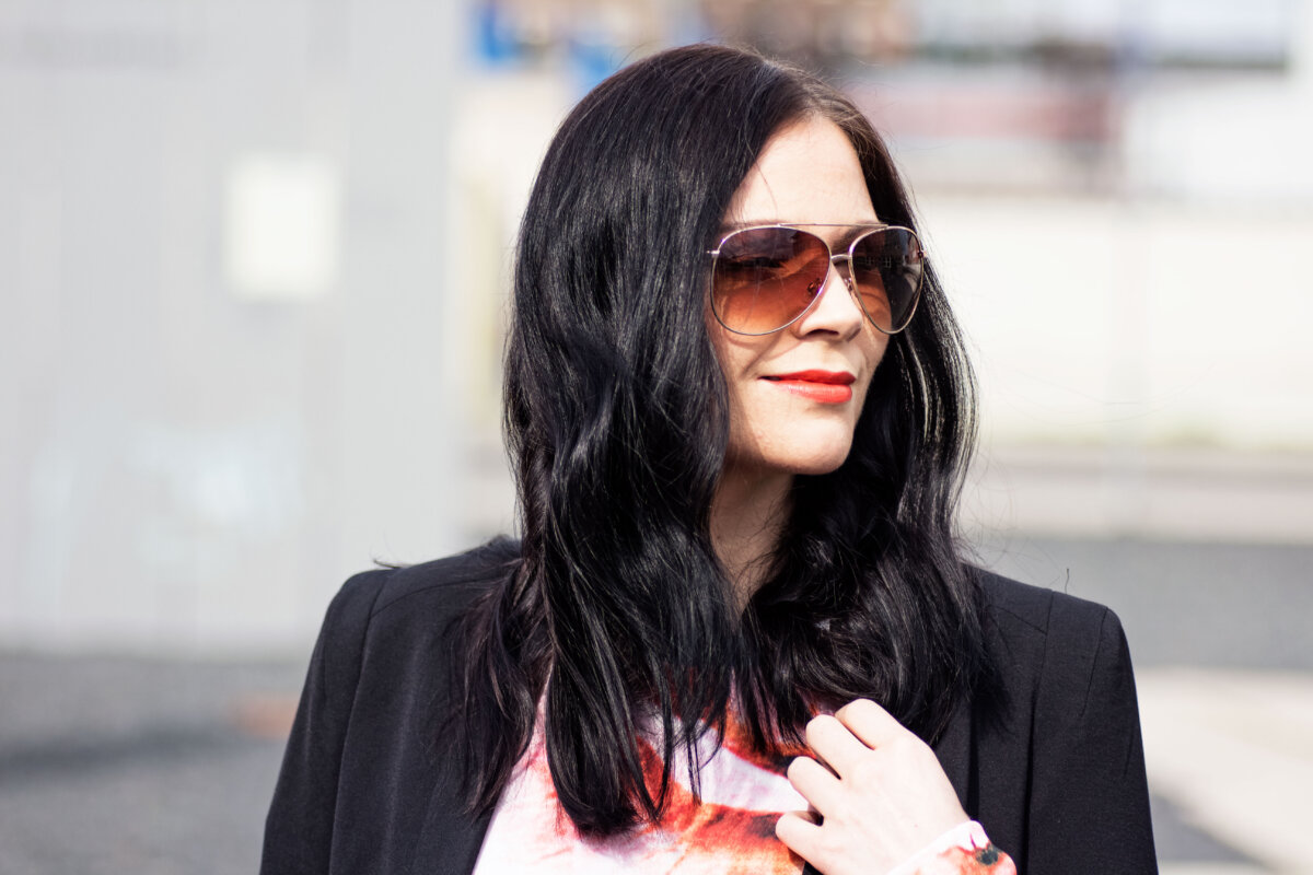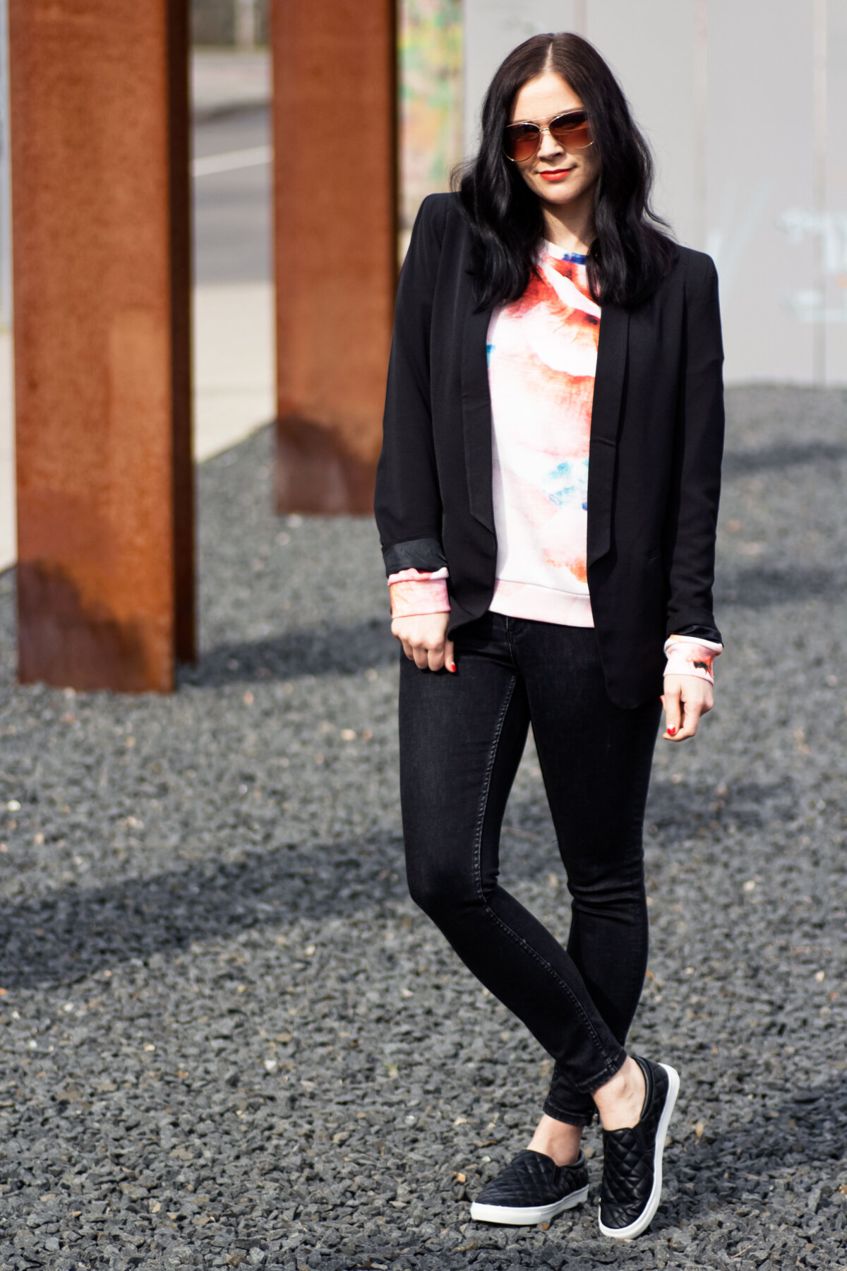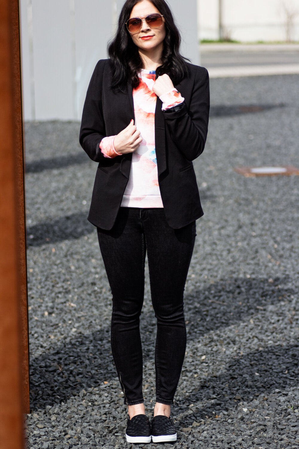 Ich finde, das Blüten Muster durchbricht die Strenge des sonst eher klassischen Looks und macht ihn peppiger. Genau wie ich es mag. Und fertig ist der Look.