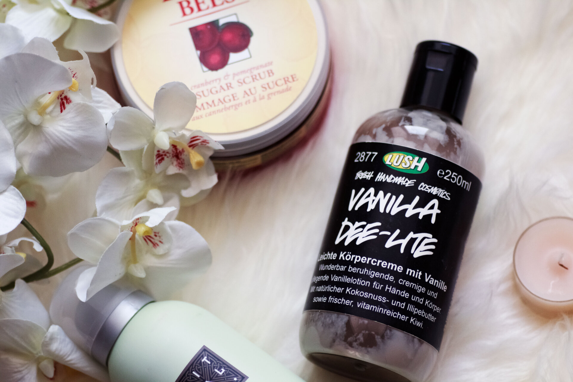 Im Frühling creme ich meine trockene Haut gerne mit einer leichten Körpercreme ein. Vanilla Dee-Lite von Lush ist mein derzeitiger Favorit – ein Klassiker von Lush den ihr bestimmt kennt. Die Bodylotion duftet zart nach Vanille und Jasmin, zieht schnell in die Haut ein und spendet sehr gut Feuchtigkeit. Die leichte Creme pflegt meine trockene Haut sehr gut, macht sie spürbar weicher und der Duft passt perfekt zum Frühling.