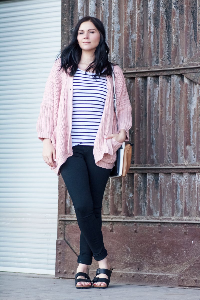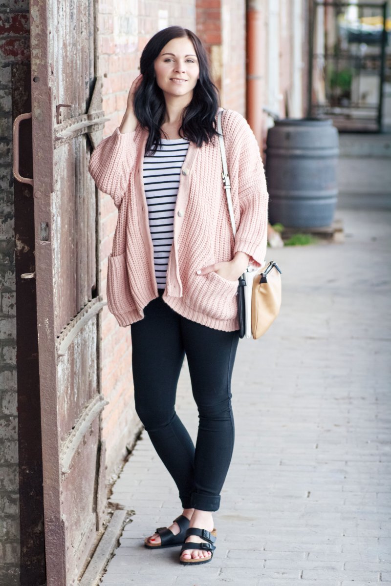Ich liebe ja auch Strickjacken! Und in Rose ist das eine tolle Kombi für den Frühling. Als Kind wurde ich genötigt pinke Birkenstock zu tragen, und konnte es kaum erwarten sie endlich in die Tonne zu werfen.