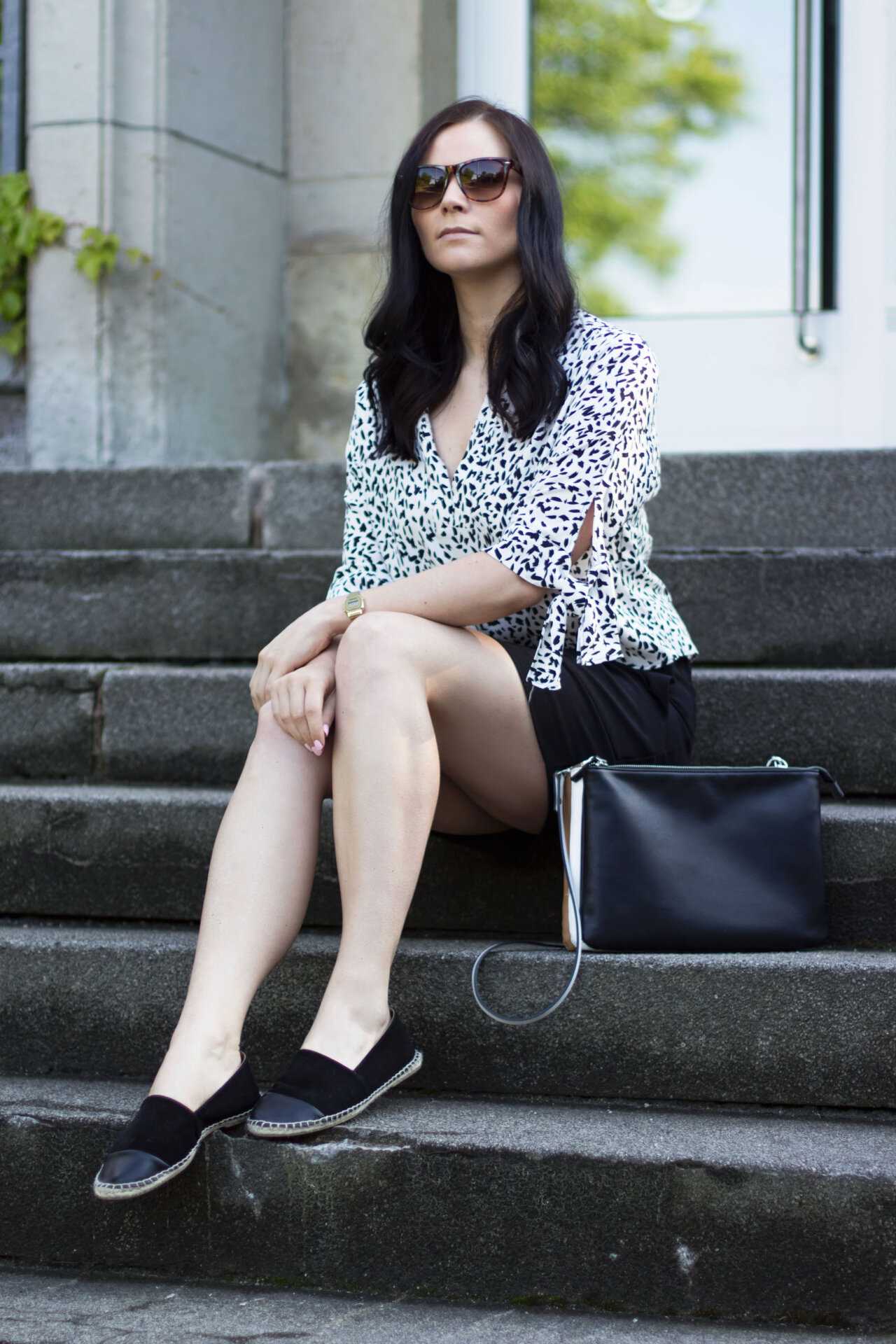 Schwarz und Weiß sind meine Farben. Wie ihr wisst, wollte ich den Sommer outfittechnisch etwas bunter angehen. Dennoch habe ich wieder zu meinem beiden Lieblingsfarben Schwarz und Weiß gegriffen. Das liegt wohl auch daran, dass das knallige rote Kleid von Zara (von dem ich euch im Sonntagsbrunch berichtet habe) noch nicht bei mir angekommen ist. Ich habe es Vorgestern bestellt und werde mich wohl noch ein paar Tage gedulden müssen, bis es bei mir ankommt. Warten ist einfach nicht meine Stärke! Ich kann es kaum erwarten das Blusenkleid endlich über meinen Kopf zu stülpen und hoffe, dass es auch passt. Die Kleidergrößen von Zara und ich sind nämlich nicht die besten Freunde. Prinzipiell sind mir die Sachen entweder zu klein oder zu groß. Ich muss meistens zweimal bestellen damit auch alles perfekt sitzt. Ich denke vielen von euch geht es da ähnlich wie mir, oder?