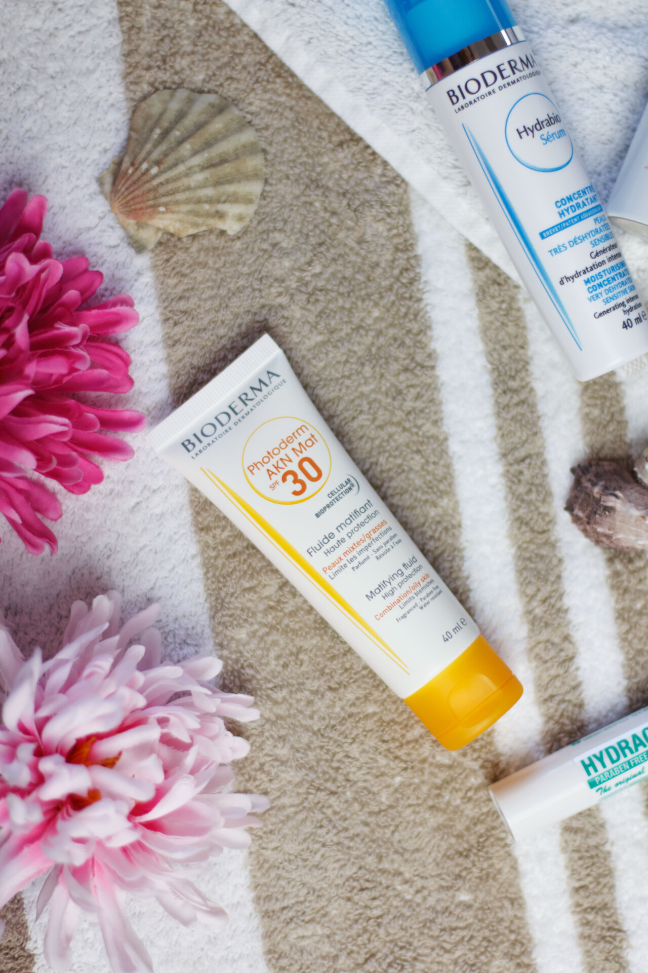 Im Sommer neigt meine Haut dazu unschön in der T-Zone zu glänzen. Deshalb verwende ich einen mattierenden Sonnenschutz speziell für das Gesicht. Das Bioderma Photoderm AKN Fluid ist besonders für Mischhaut, Akne Haut und fettige Haut geeignet. Das Fluid schützt vor UVA- und UVB Strahlen, ist wasserfest und verstopft dabei nicht die Poren. Genau das Richtige für meine Haut. Wer mehr über das Produkt erfahren möchte, kann hier meine Review zu Bioderma Photoderm AKN Mat Fluid lesen.