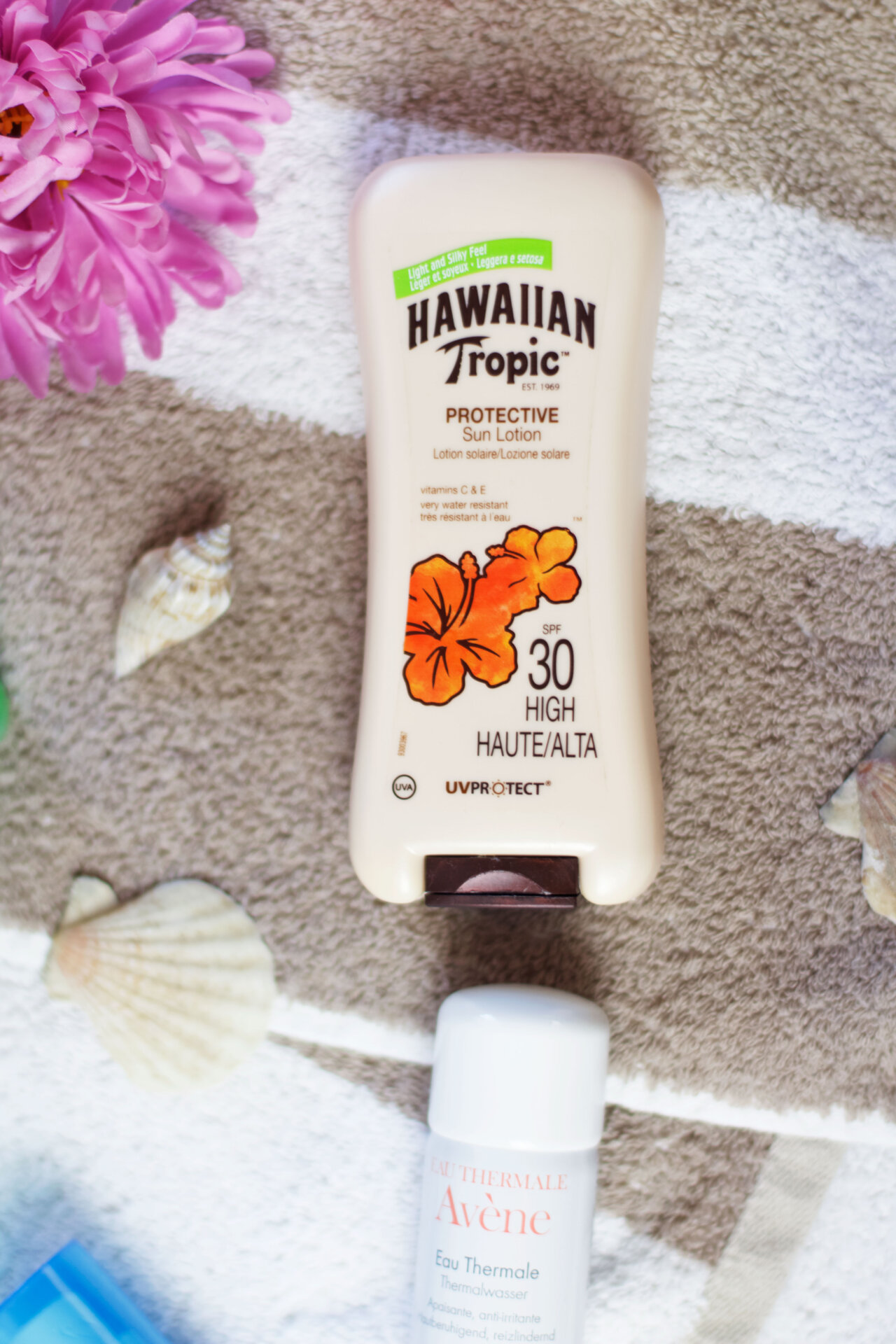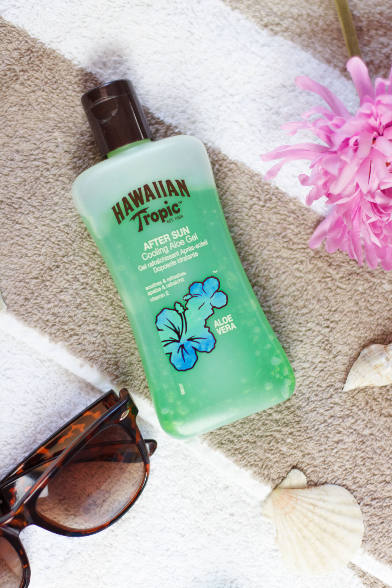 Nach dem Sonnenbad verwende ich immer eine After Sun Lotion. Das Cooling Gel von Hawaiian Tropic versorgt meine Haut mit Vitamin A, E und Aloe Vera und hat einen kühlenden Effekt. Das Gel lindert Sonnenbrand und beruhigt die Haut. Optimal für jeden Strandurlaub!