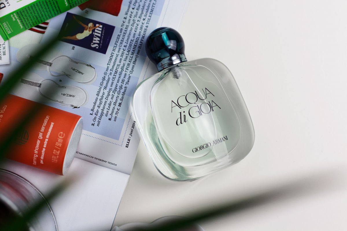 Vor kurzem habe ich meinen geliebten Korres Duft in „White Tea Bergamot Freesia“ aufgebraucht. Seitdem halte ich mich mit kleinen Duftproben über Wasser. Weil sich mein Duftproben-Berg aber schon stark verringert hat, habe ich mich dazu entschlossen einen neuen Sommerduft anzuschaffen. Mit Kaffeebohnen bewaffnet schlenderte ich durch die Parfümerie und testete alle Sommerdüfte die das Sortiment zu bieten hatte. Letztendlich ist meine Wahl auf Giorgio Armani „Acqua di Gioia“ gefallen. Das Parfüm hat einen blumig frischen Duft mit warmer Unternote. Ein einzigartiger Duft, der mich an den frischen Duft des Meeres an einem heißen Sommertrag erinnert. Besonders gut an dem Parfüm gefällt mir die Kombination von Jasminblüten und Zedern – einfach ein ganz tolles Parfüm, das etwas Sinnliches an sich hat.