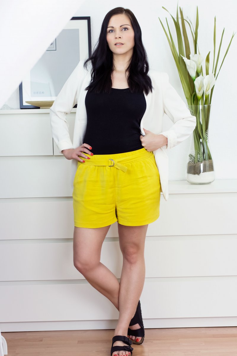 Those shorts look really nice on you! Lovely, sunny shade 🙂