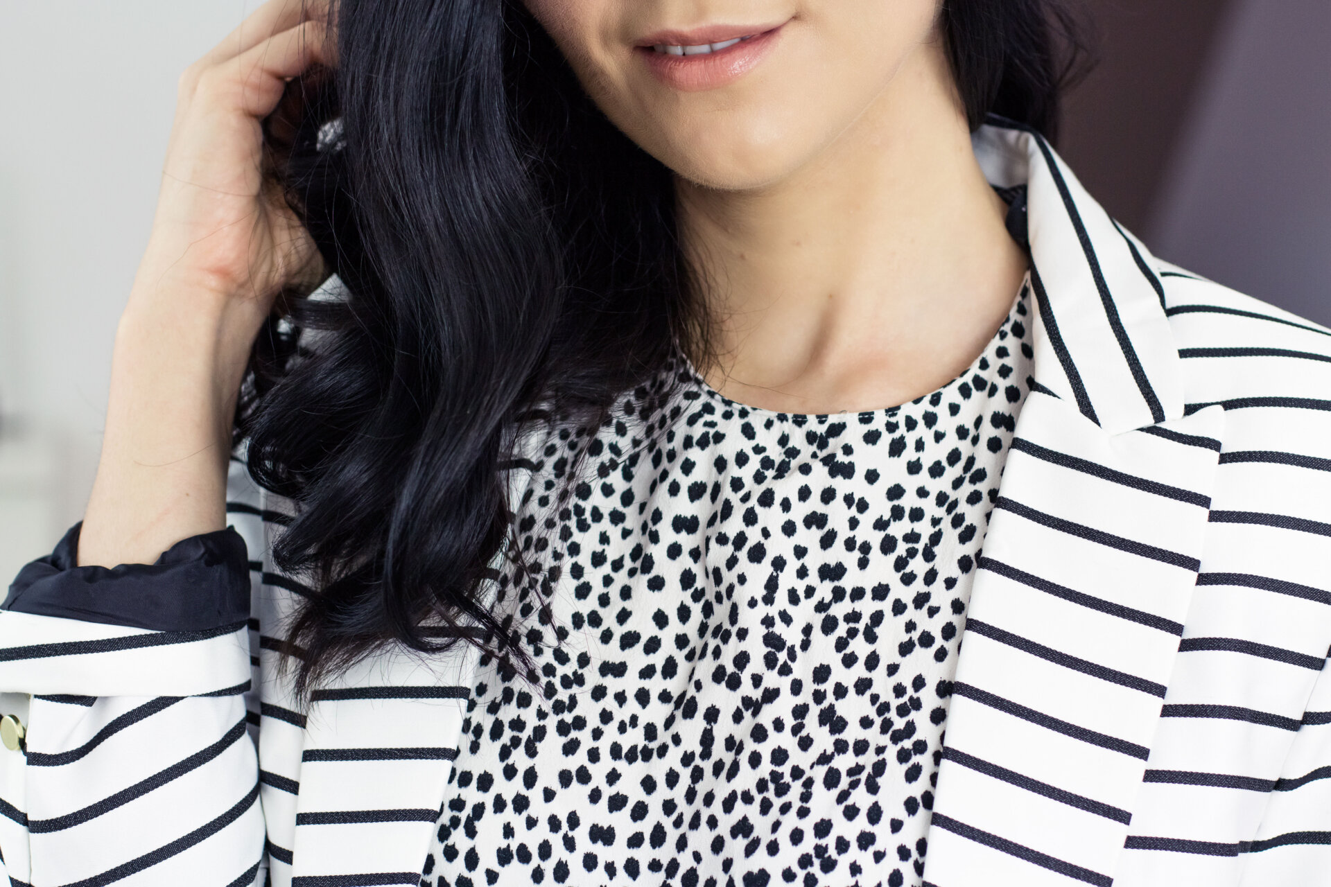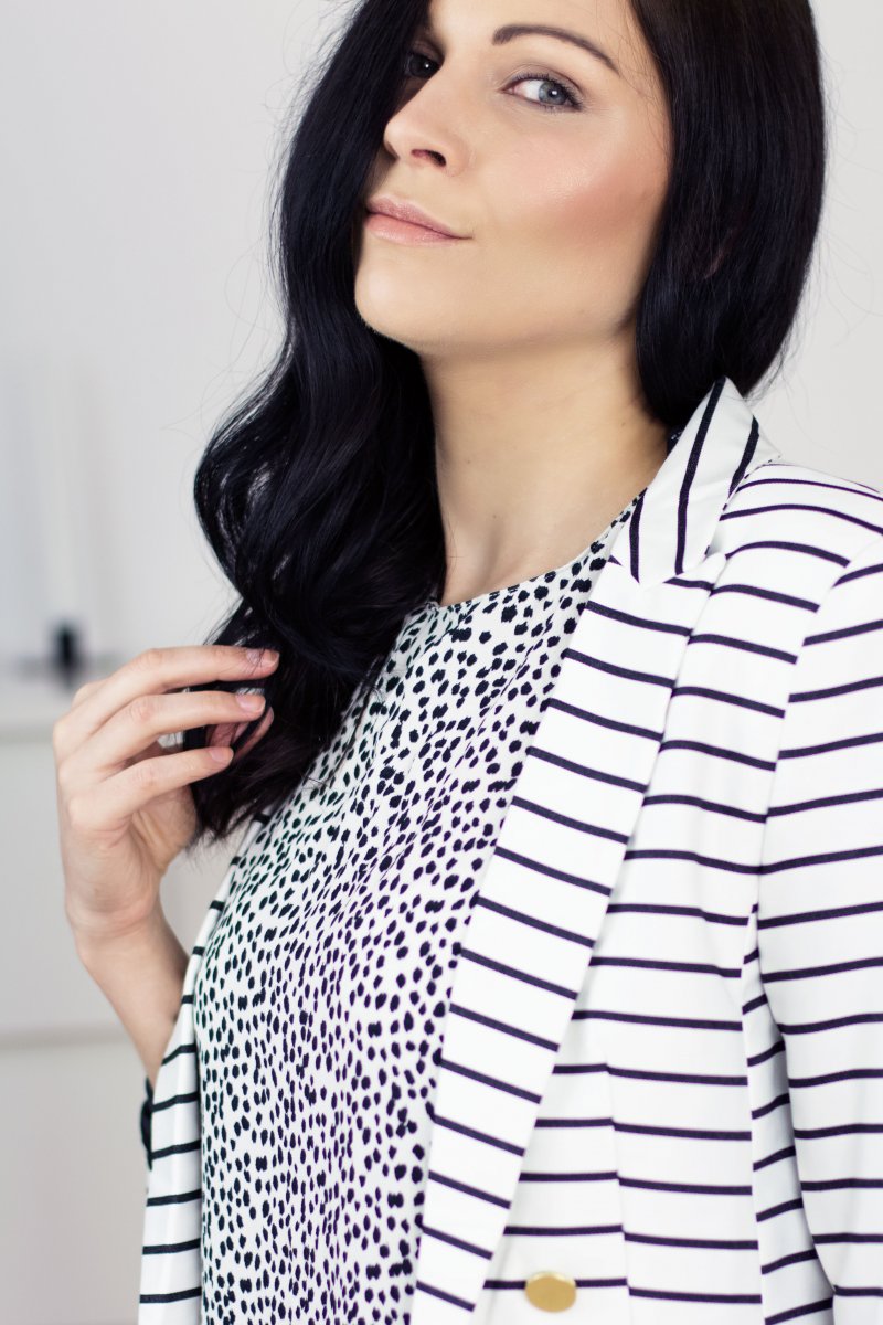 Mir war einfach danach, ich wollte Streifen und Punkte in einem Look tragen. Zugegeben konnte ich mich auch an diesem Tag einfach nicht entscheiden. Streifen Blazer und Punkte Top lächelten mich gleichermaßen an und mit mir um die Wette. Was dazu führte, dass ich meine gewagte Outfit-Kombination einfach anbehalten habe. Ich fühlte mich super wohl in „Bepunktet-Gestreift“ und das ist doch in erster Linie die Hauptsache.