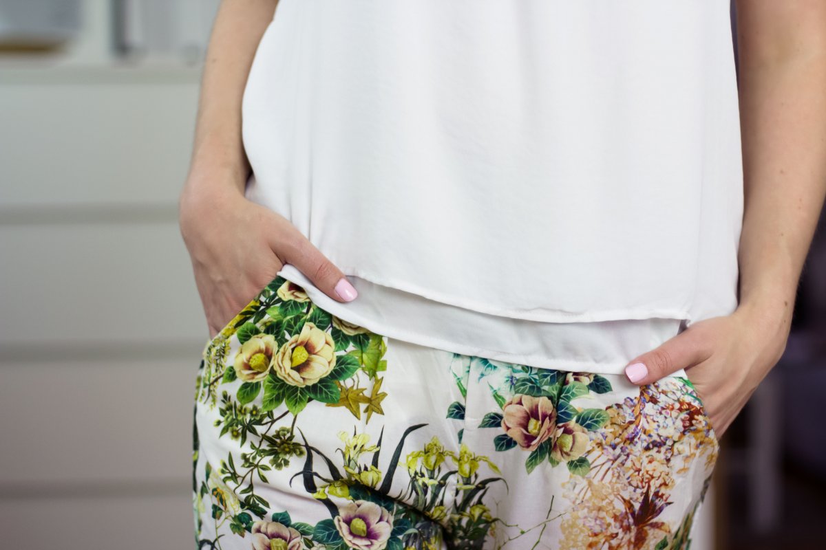 Die Blumenhose finde ich toll, schön kombiniert mit dem weißen Top!