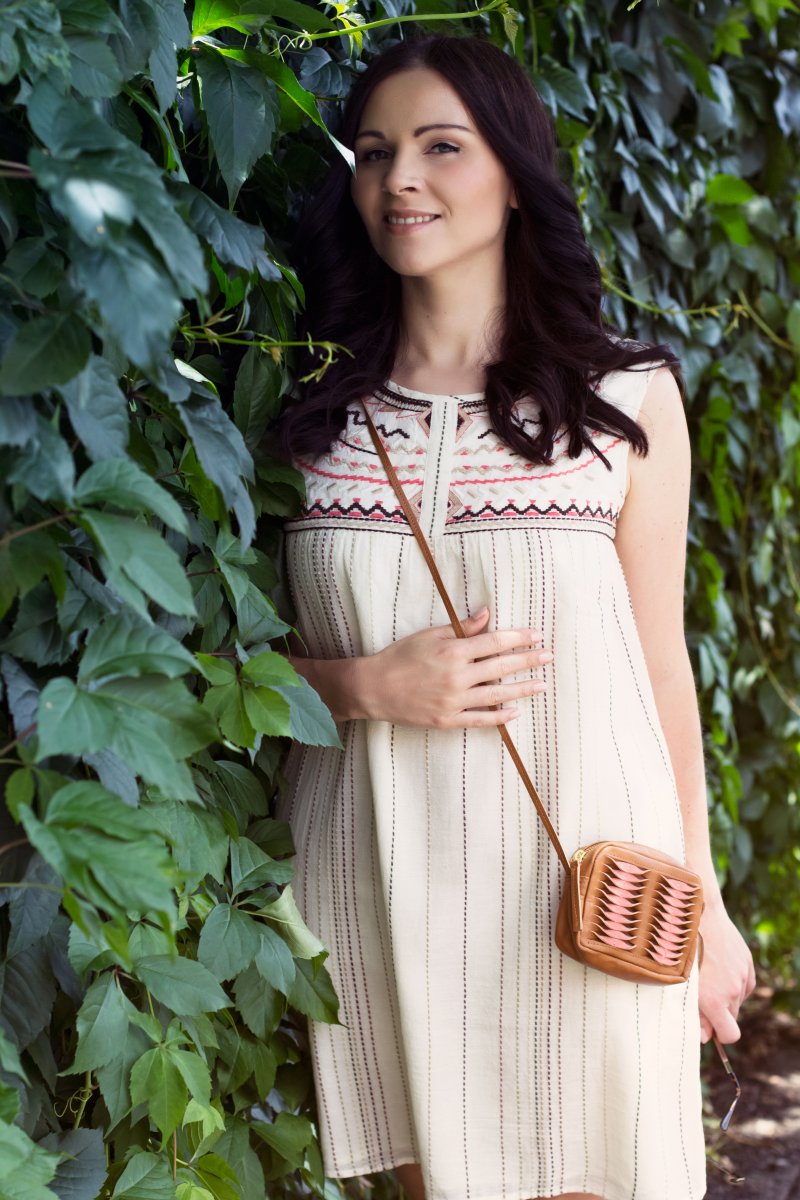 Das zweite Kleid in dieser Woche, das ich euch hier auf Kleidermädchen präsentiere. Anfang der Woche sprang ich noch mit dem floralen Sommerkleid durch das Kornfeld und rannte mit den Gewitterwolken um die Wette. Kaum zurück in der Stadt darf es auch mal gemütlicher sein. Ein Kleid aus Baumwollstoff in weitem Schnitt ist dabei meine erste Wahl. Besonders gut an dem Kleid gefällt mir die dezente Ethno Stickerei und natürlich das angenehme Tragegefühl auf meiner Haut. Passend dazu wählte ich beige Zara-Sandalen, die kleine Topshop Tasche aus meinem Topshop Summer Festival Look und eine Sonnenbrille von Gina Tricot aus.
