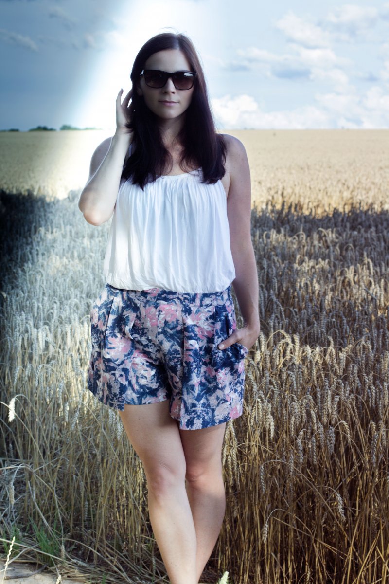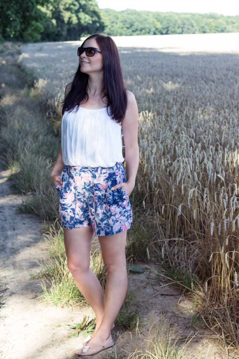 Der Sommer lässt nicht viel Spielraum für modische Experimente. Zumeist greift Frau zu den selben Kleidungsstücken – so auch ich. Meine Wahl fällt in letzter Zeit fast immer auf die Shorts. Die Hose mit den kurzen Beinen trage ich am liebsten in gemusterter Optik. Dieses Modell von H&M habe ich erst letzte Woche im Sale geshoppt. In Kombination mit einem weißen Shirt, Bluse oder Top ist das Outfit unschlagbar und der heiße Sommer Tag kann ganz bequem begonnen werden. Und auch an den Füßen geht es gemütlich weiter, ich trage ausschließlich flache Sandalen, Espadrilles oder Ballerinas.