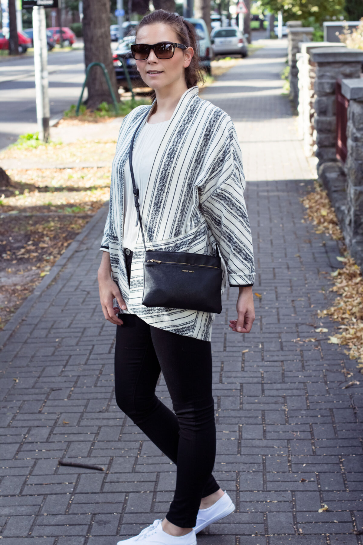ich finde dein Outfit äußerst leger und direkt für jede „Alltagssituation“ gedacht. Die Farben zeigen sich im klassischem Stil – weiß und schwarz passt ganz gut zusammen, auch wenn ein paar auffällige Farbtupfer fehlen.