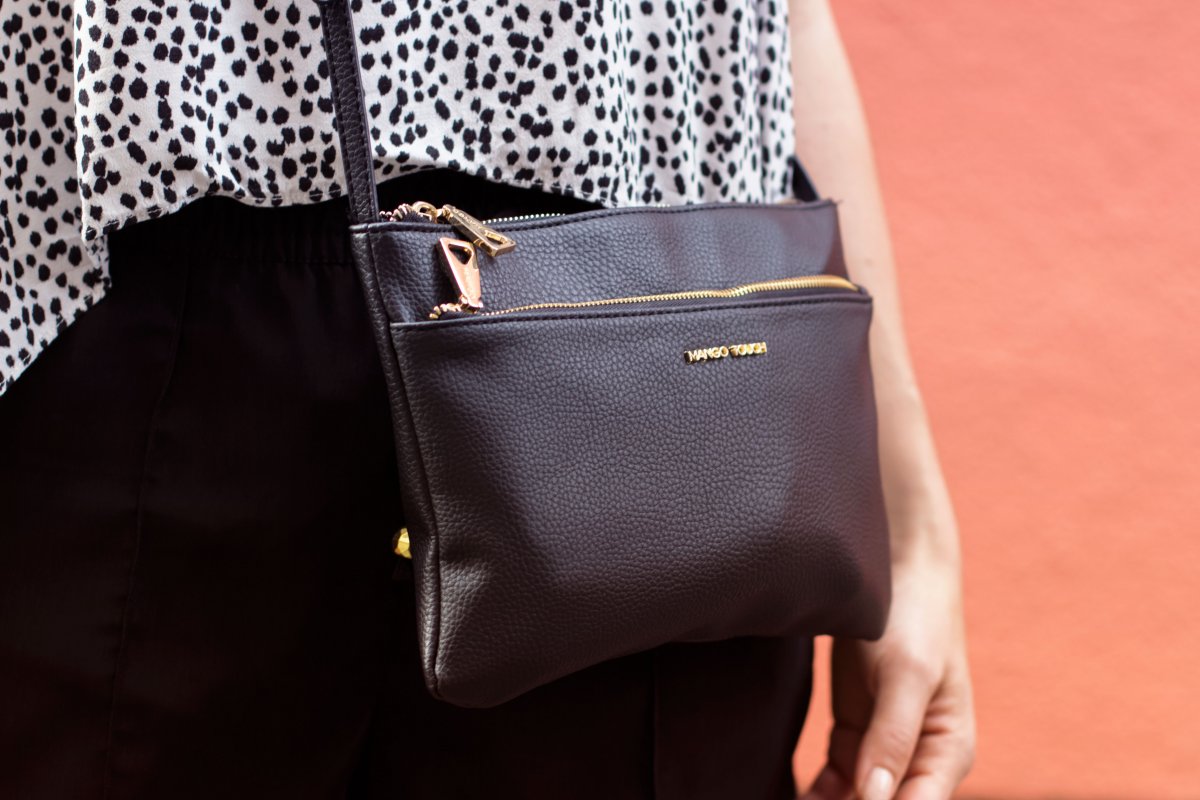 Das Top kaufe ich bei Zara und einer meiner Outfit-Favoriten diesen Sommer – ich liebe das gepunktete Muster! Das Muster gefällt mir so gut, dass ich mir auch noch ein Kleid im ähnlichen Stil gekauft habe. Natürlich enthalte ich euch dieses Schmuckstück nicht vor und werde es bald hier auf meinem Blog präsentiere. Shorts, Tasche und Schuhe sind schlicht in Schwarz gehalten und runden das herbstliche Outfit ab.