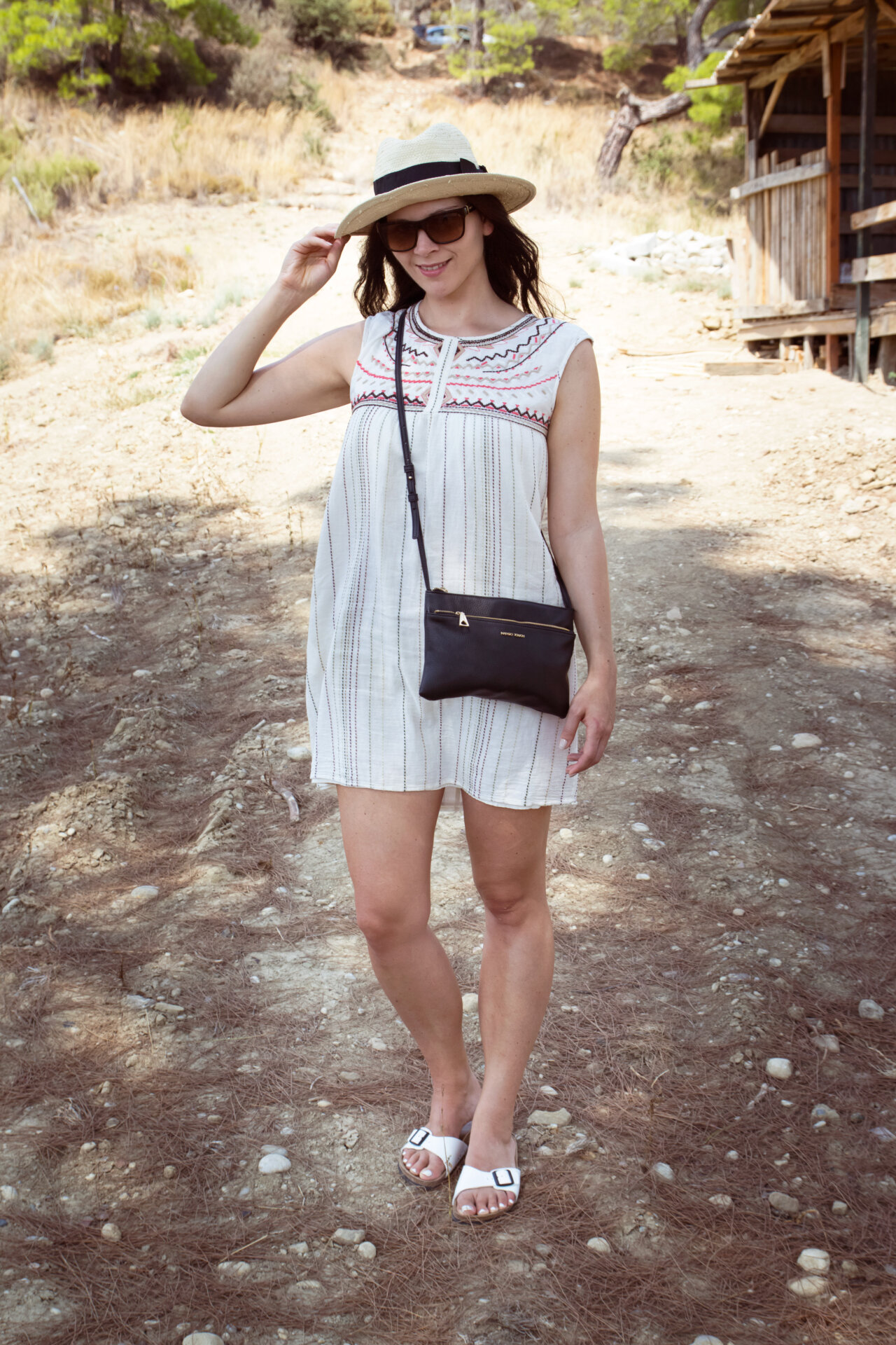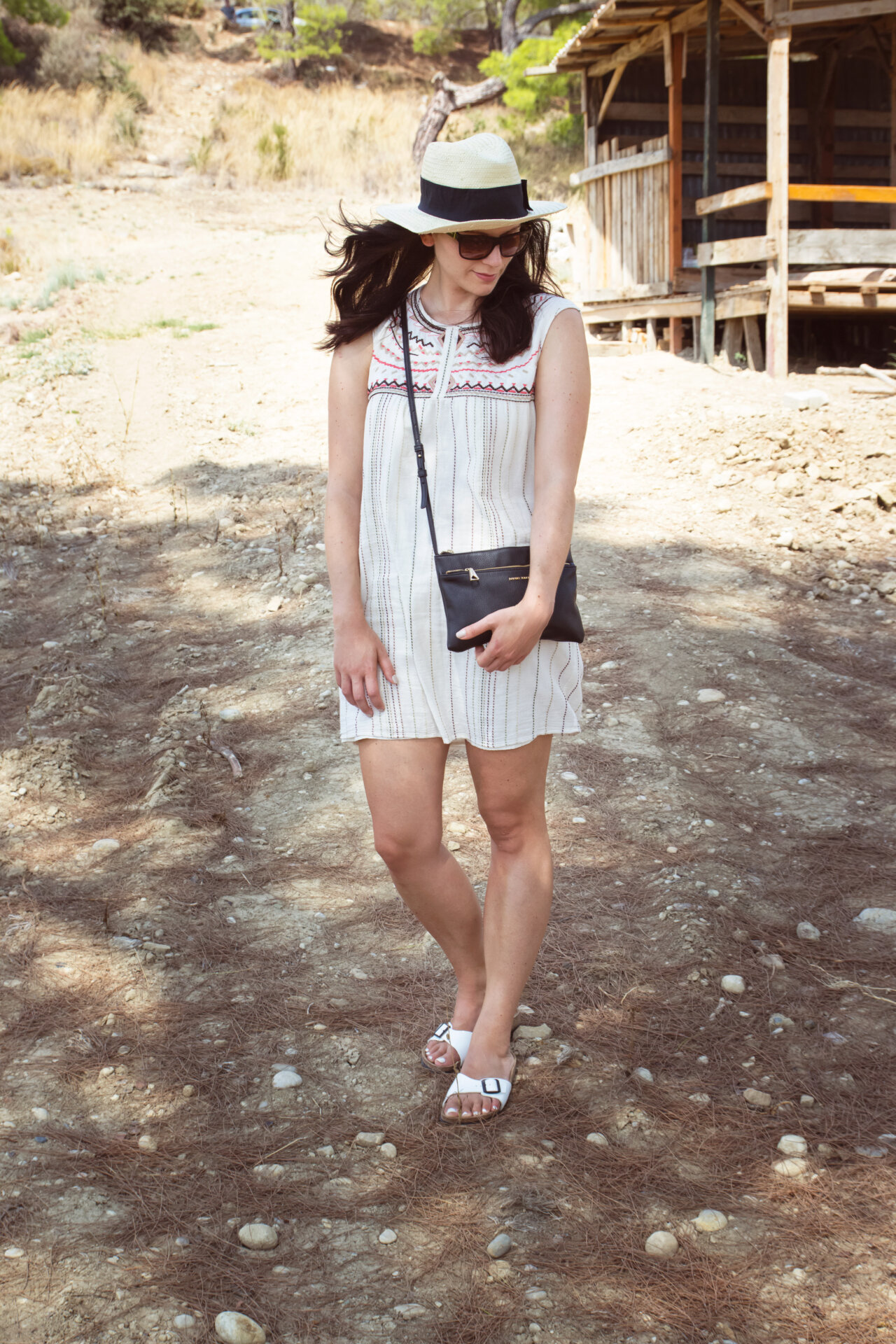 // Kleid – Mango // Hut – H&M // Tasche – Mango // Sandalen Birkenstock – Madrid // Nagellack essie – sand tropez und blanc //