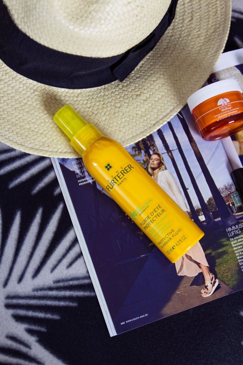 Ebenfalls neu ins Beauty-Schränkchen wanderte das schützende Sommerfluid von Rene Furterer. Vor allem bei Strandurlauben wird das Haar sehr beansprucht. Es ist UV-Strahlen, Meer- und Chlorwasser ausgesetzt und bedarf intensiver Feuchtigkeit. Das Spray wird großzügig auf die Haarlängen aufgetragen und ist sogar wasserfest. Zudem duftet es blumig frisch und erinnert an Sonne und Strand, was mir sehr gut gefällt. Ich werde euch berichten wie es finde.