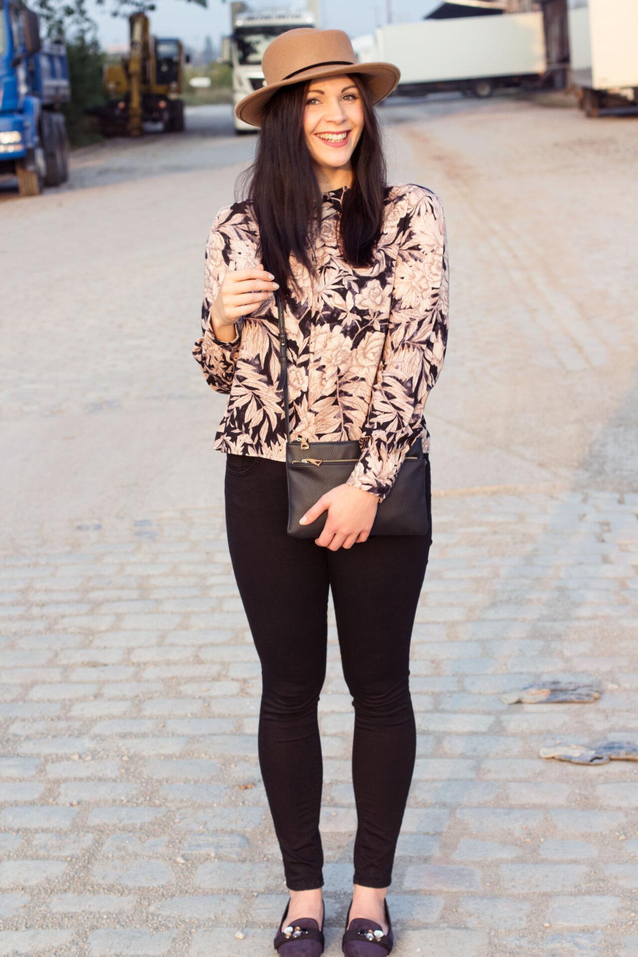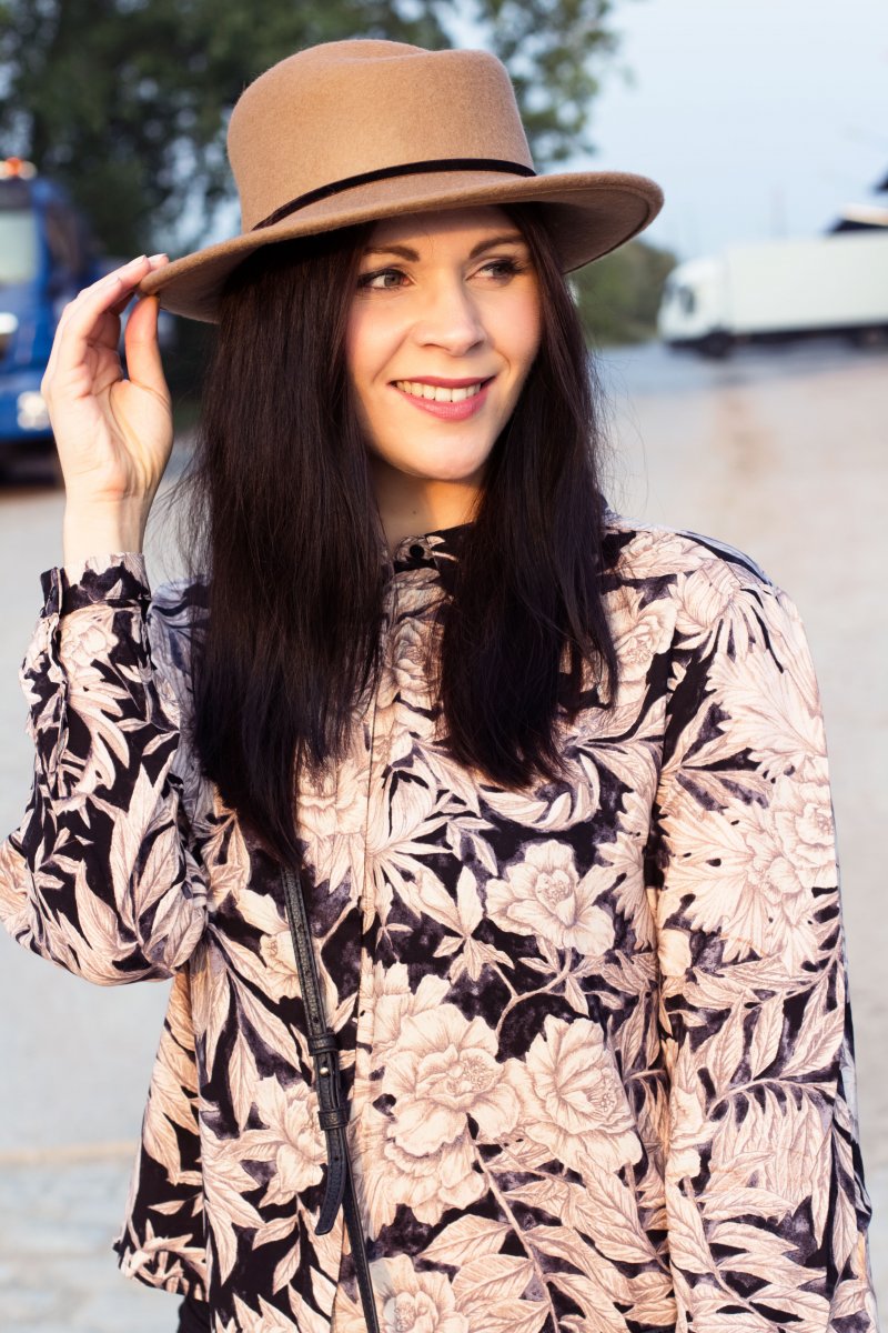 Dein Outfit ist richtig passend mit diesen braunen Blumen – mir gefällts sehr 🙂