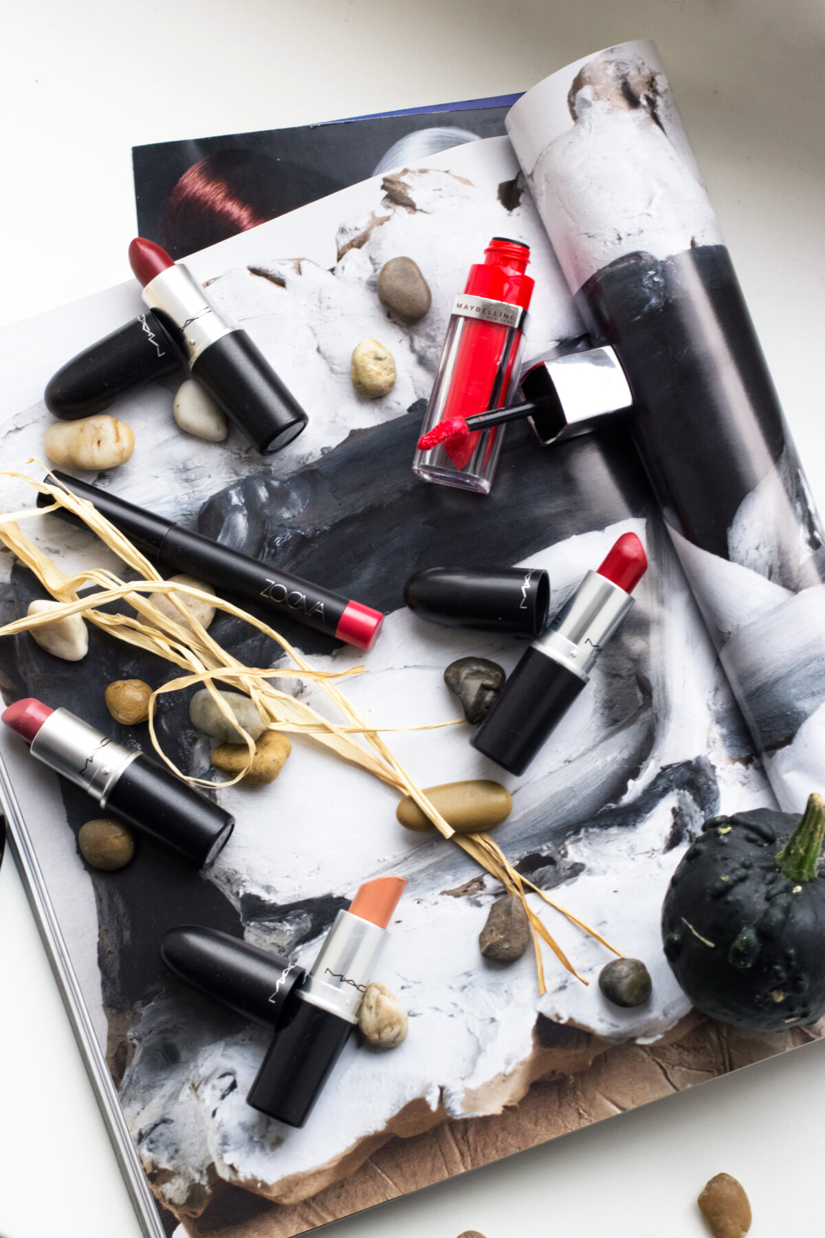 Im Herbst hingegen bin ich ganz Lippenstift-Mädchen und nutze jede Gelegenheit, um meine Lippenstifte zu präsentieren. Am Tag greife ich am liebsten zu Nude- und Mauvetönen, wie Freckletone oder Twig von MAC. Abends und zu besonderen Anlässen trage ich sehr gerne dunkle Rottöne, wie Russian Red oder Dubonnet von MAC.