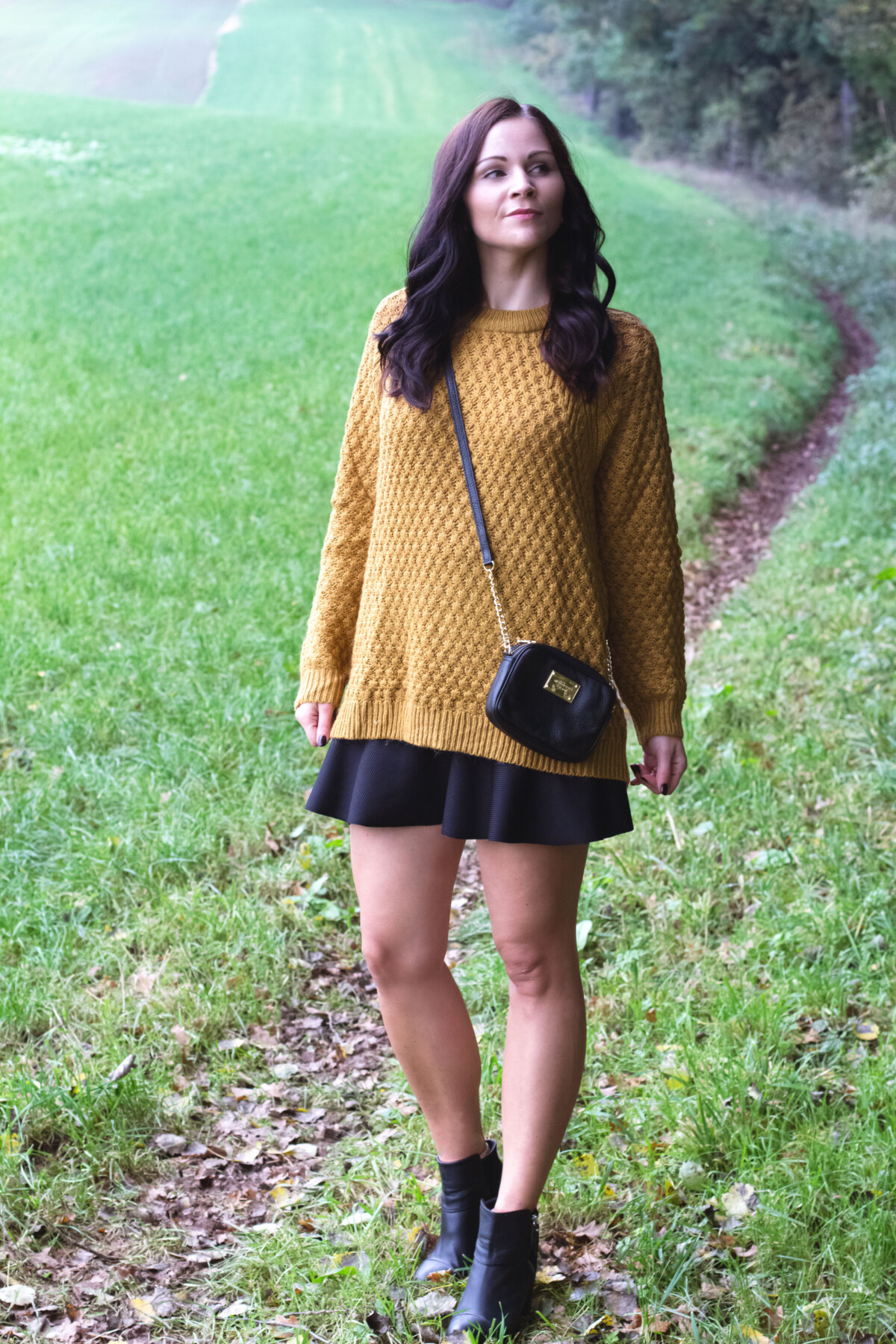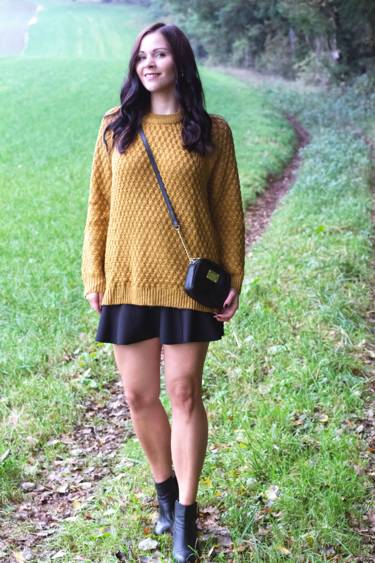 Dass ich ein großer Fan des „oben Winter unten Sommer“ Looks bin, wisst ihr bereits aus meiner Turtleneck Outfit Inspiration. Und damit nicht genug, zeige ich euch wieder eine Inspiration mit Rock, diesmal aber mit der kurzen Variante, den Minirock. Der schwarze Rock wurde in der letzten Saison bei H&M gefunden und passt einfach perfekt zu meinem cognac-farbenen Strickpullover und den Ankle Boots von H&M. An kühleren Tagen trage ich zu meinem Look zusätzlich noch eine dicke Strumpfhose, Schal und Kurzmantel, damit ist das Outfit in Handumdrehen wintertauglich gemacht.