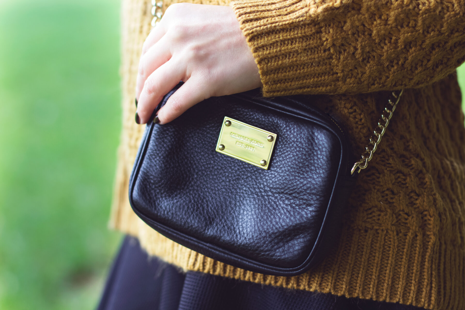 // Pullover – H&M (Similar Here) // Rock – H&M (Similar Here,Here, Here) // Boots – H&M (Similar Here, Here) // Tasche – Michael Kors // Nagellack – essie wicked // Lippenstift – MAC Twig //