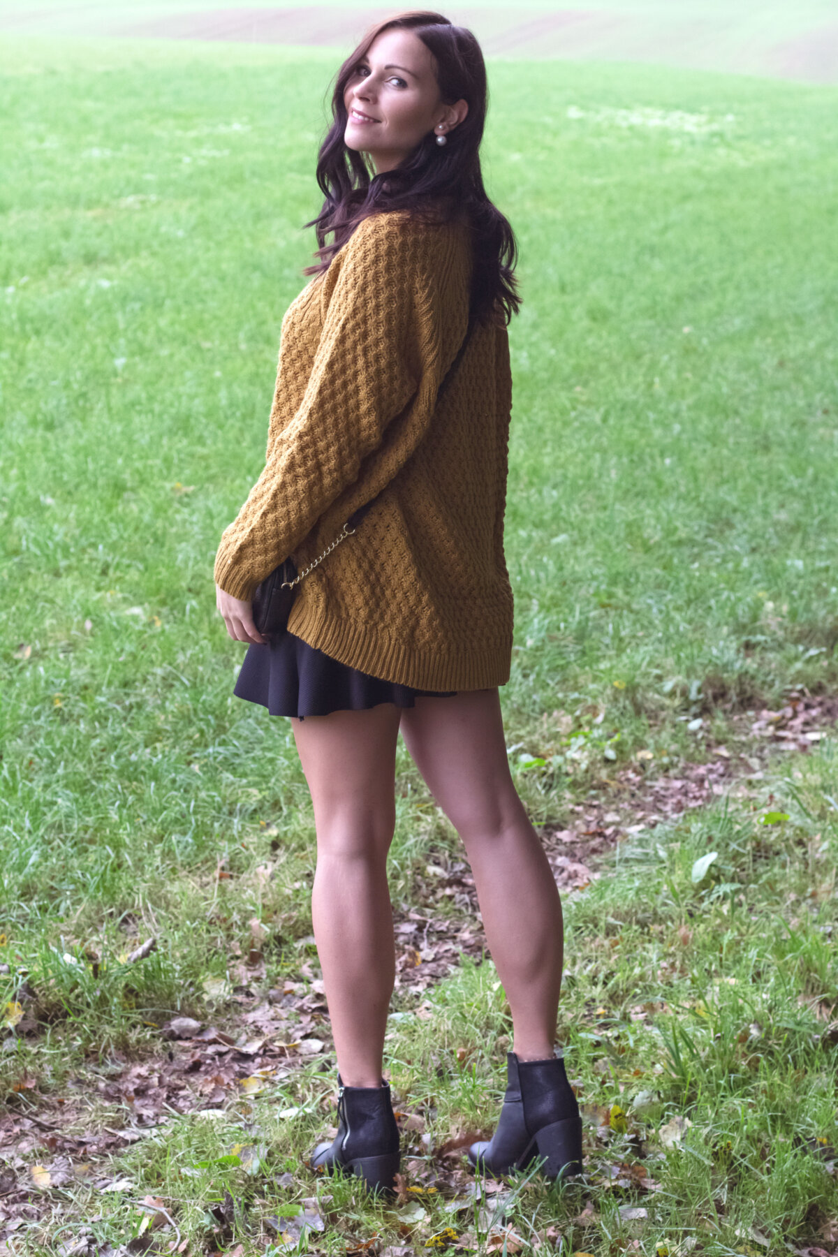 Heute zeige ich euch das 2. Outfit aus meiner How-To-Wear-Serie: One Sweater, Two Ways To Wear und setze den Strickpullover mit Rock und Ankle Boots in Szene – eine Kombination, die ich auch gerne Mal am Abend trage.