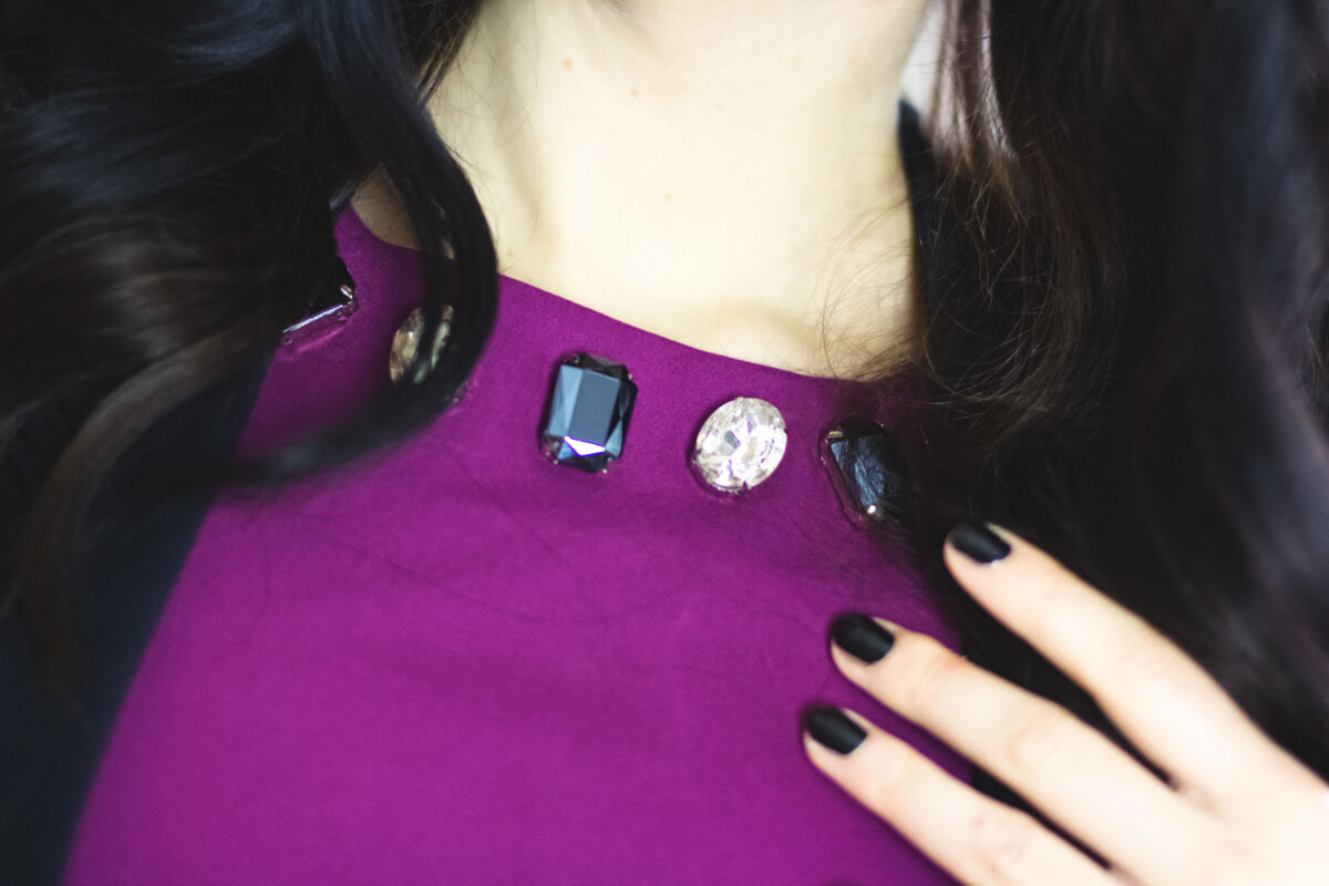 // lila Etui-Kleid – Mint&Berry (Similar Here, Here) // schwarzer Blazer – Topshop (Similar Here, Here) // schwarze Clutch – Mint&Berry (Similar Here, Here) // schwarze Midi Pumps – Zign (Similar Here, Here) //