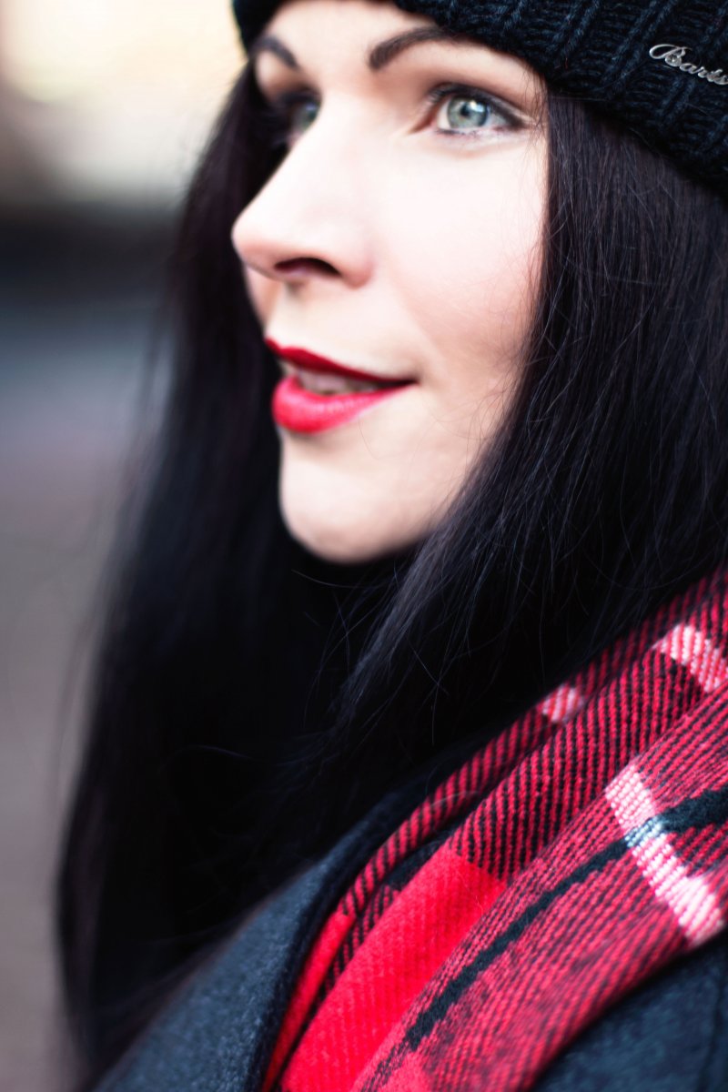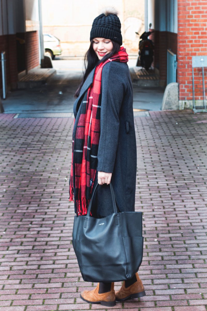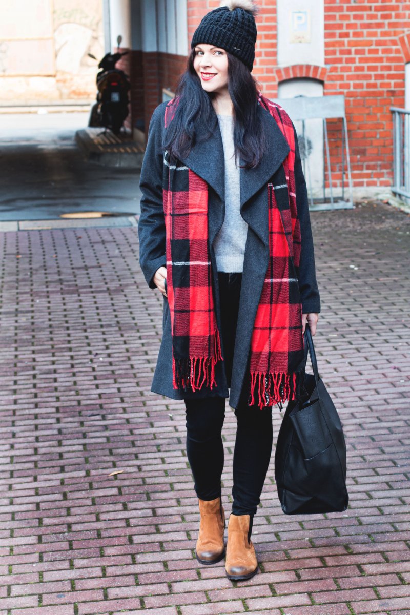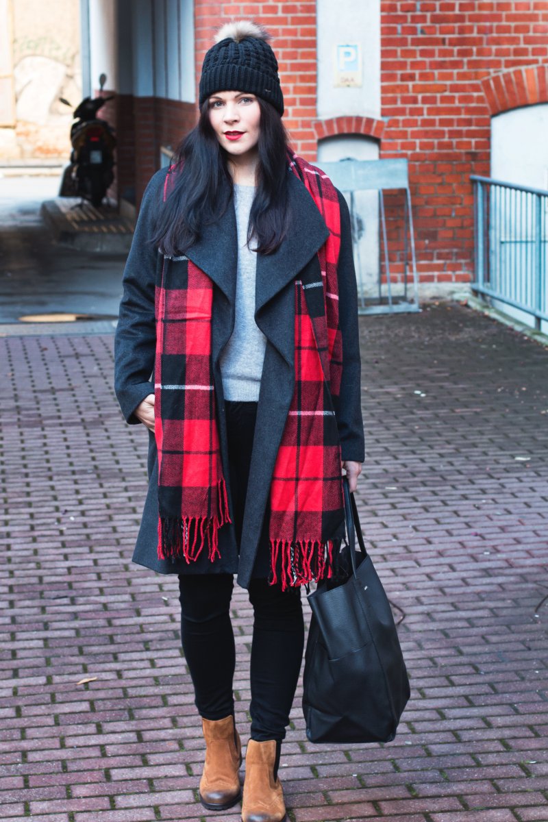 Über die Feiertage wiederentdeckt habe ich den rot-karierten Schal von Gina Tricot und mich prompt neu verliebt. Er verleiht den Winter-Look etwas Farbe und lässt meine Leidenschaft zu Karo-Mustern neu entfachen. Die rote Farbe des Schals animierte mich auch gleich dazu, mit meinen liebsten roten Lippenstift MAC Russian Red aufzutragen.Aber auch zu meinen braunen Stiefeletten passt er ausgezeichnet. Ein bisschen Farbe kann eben nie schaden.