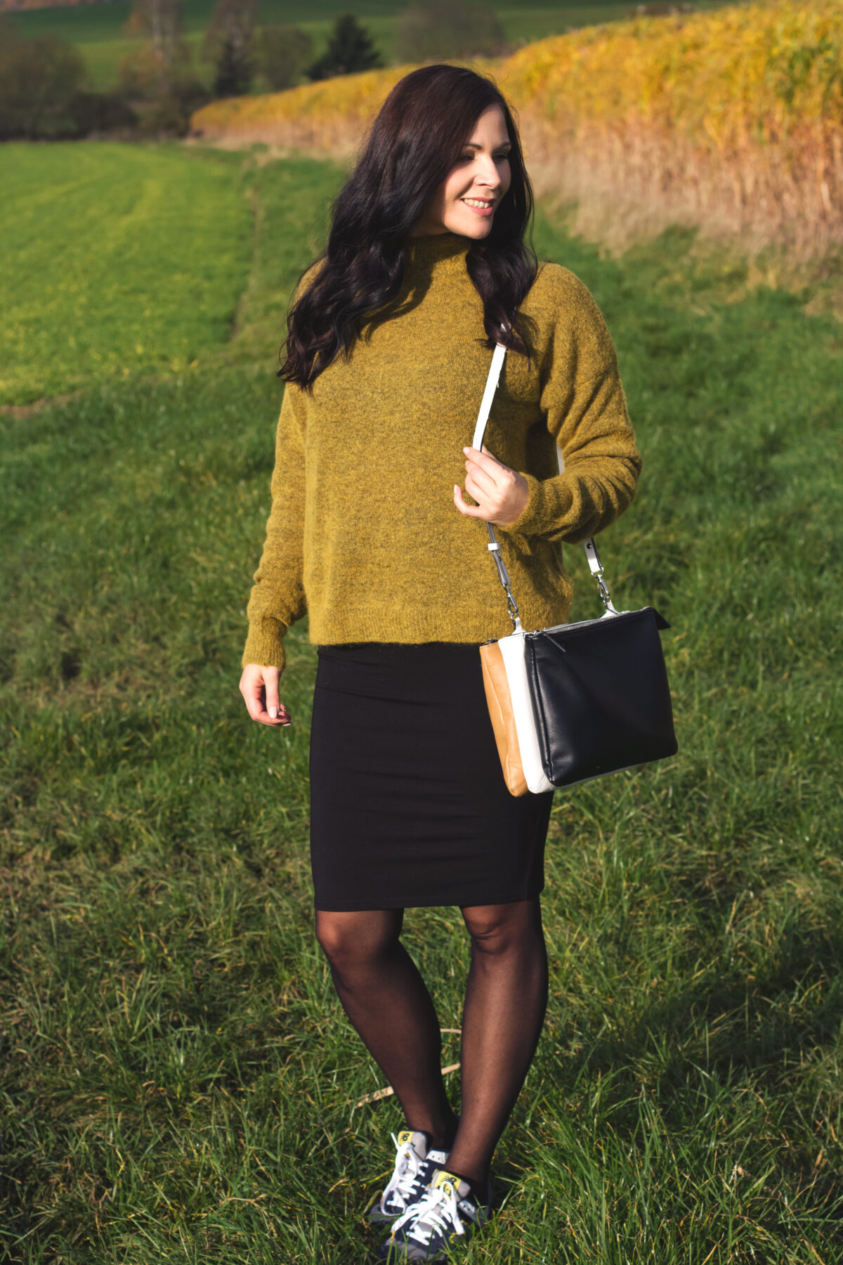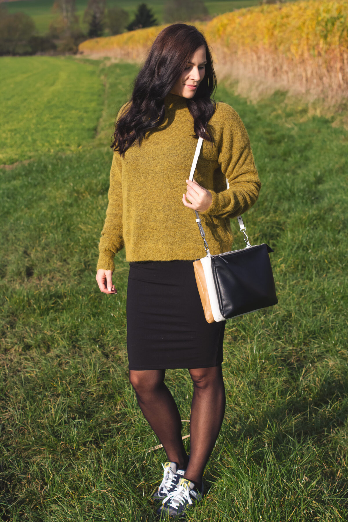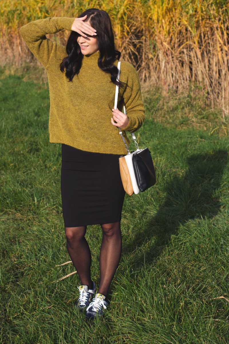 For this I’m doing the first step by today presenting you this outfit style and combine sneakers to a midi-skirt. I love to combine elegant and sporty style. Thats what I wear for today; a classic pencil skirt with my brand new New Balance sneakers. I really like contrast and colour between the turtleneck and the sporty sneakers. A fabolous look for winter days. Then I combine it with my mango coat, which I have shown you on my blog in my One Sweater, Two Ways To Wear Outfit. All around my neck I swing my big topshop scarf you might know him from my Midi Skirt Autumn Style. That’s it – the perfect style for cold winter days. Do you like my outfit? Do you wear a sneakers-skirt-combination?