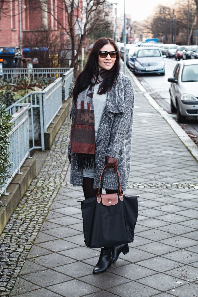 Der Winter ist zurück! Und ich mummle mich ganz dich ein! Das geht am besten mit einem Lagenlook. Ihr wisst ja, ich liebe Layering! Was ich dafür brauche: Kleid, Cardigan, Strickschal und optional diesen dunkelgrauen Mantel, den ihr bestimmt aus meinem Casual Outfit schon kennt. Und fertig ist ein gemütlicher Look für kalte Wintertage.