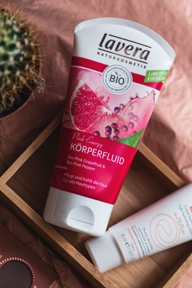Wie ihr wisst, mag ich die Produkte von lavera sehr gerne, vor allem die Bodylotions. Umso mehr habe ich mich gefreut, als ich beim Lavera Showfloor Event in meiner Goodie-Bag das Pink-Energy Körperfluid entdeckte. Ich finde, der Duft ist einfach göttlich und riecht ganz natürlich nach Grapefruit. Zudem zieht die Lotion super schnell ein und verwöhnt die Haut mit pflanzlichen Inhaltsstoffen. Die Pink Energy Lotion ist übrigens eine Limited Edition, also beeilt euch mit schnuppern 😉 .