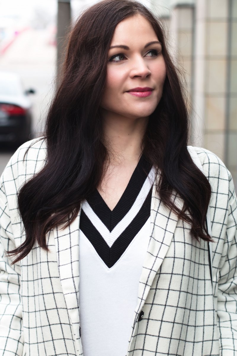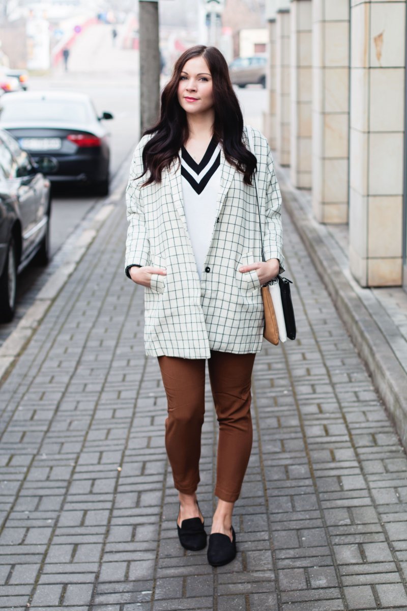 Den Blazer habe ich zuerst gar nicht gefunden, denn er war im Onlineshop als Mantel gekennzeichnet. Ich finde, dass trifft es nicht ganz, denn als Mantel ist er für mich viel zu dünn. Damit würde ich keinen Winter überstehen ohne einzufrieren. Hingegen ist der Mantel für den Übergang für mich perfekt. Neben dem tollen Schnitt, ist das Muster der Grund warum ich den Blazer unbedingt mitnehmen musste. Das dezente Karomuster hat mich auf den ersten Blick überzeugt.