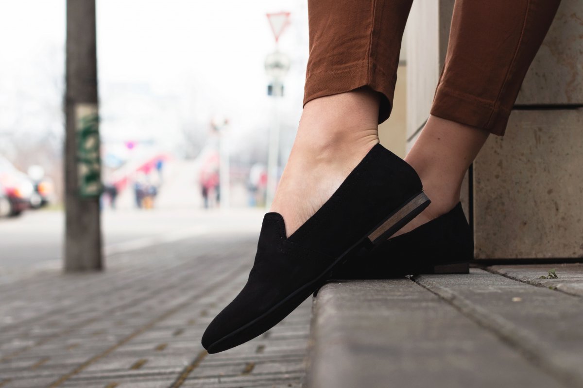 Und weil es Frühling ist, darf natürlich der Farbtupfer nicht fehlen. Ich entschied mich für ein knalliges Braun, das wärmt den Look optisch auf und lässt die Haut so schön gebräunt aussehen. An den Füssen trage ich wieder meine klassischen schwarzen Slipper. Ich bin ganz vernarrt in diese flachen, eleganten Treter.