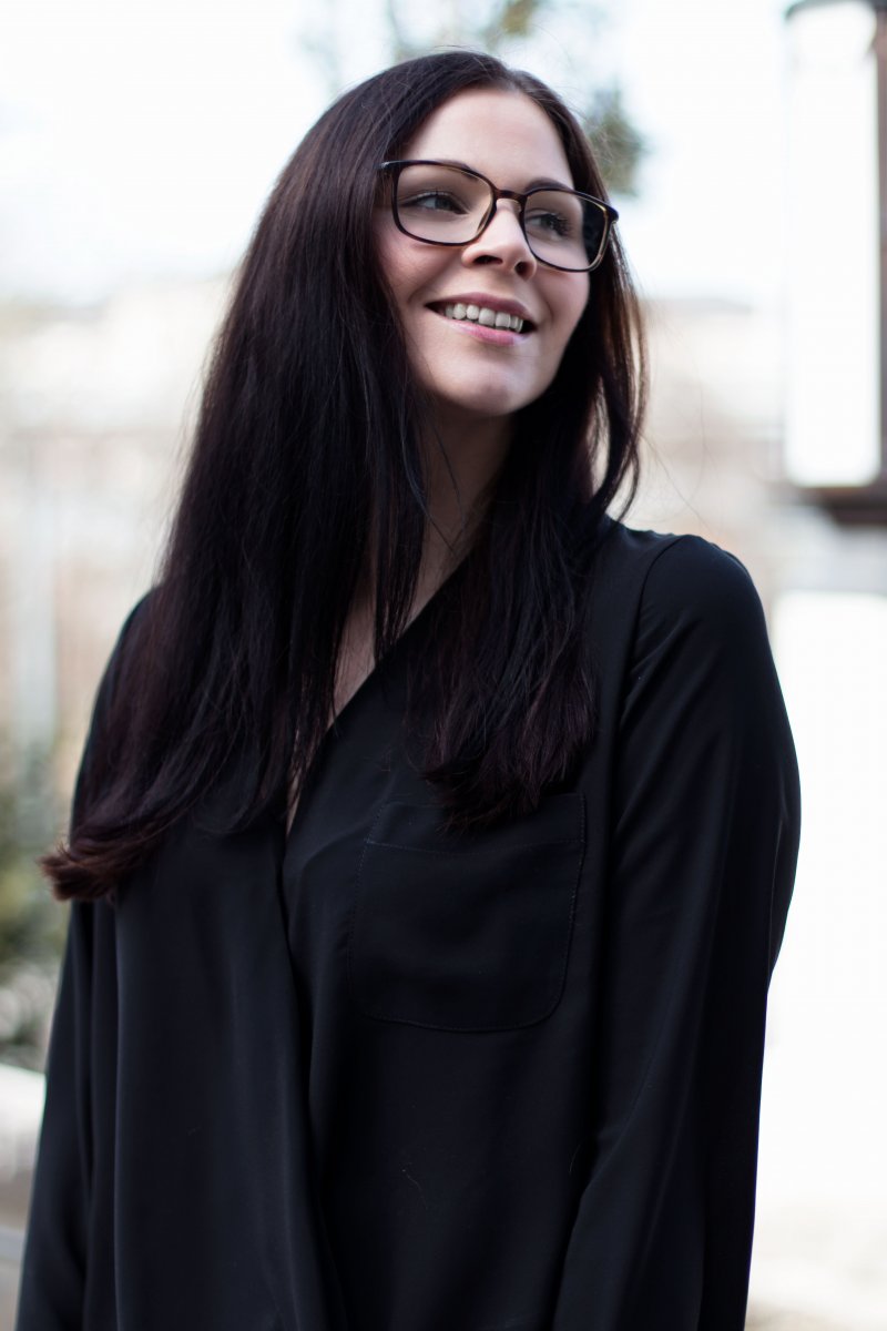 Die schwarze Tunika habe ich erst letzte Woche entdeckt und ich musste sie sofort bestellen. So eine Tunika habe ich schon eine ganze Weile gesucht. Dadurch dass sie an der Vorderseite drapiert ist, fällt sie sehr elegant. Dazu habe ich eine schwarze Jeans im Skinny Schnitt kombiniert und auf die Nase wanderte meine neue Brille.