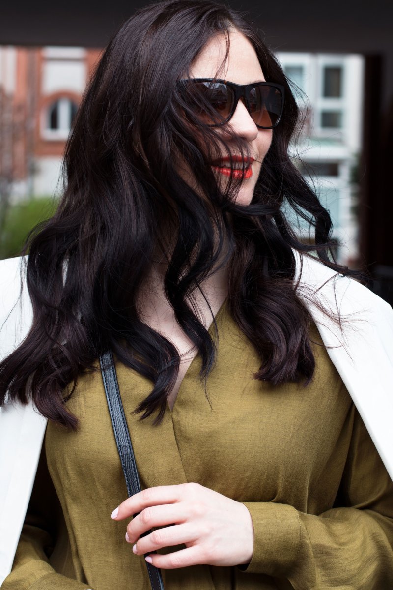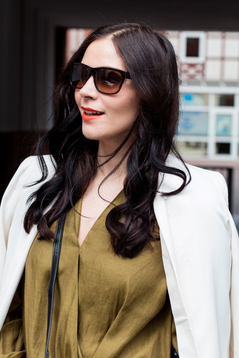 Das Khakifarbene Top sieht toll aus. Mir gefällt der leichte, fließende Stoff. Meinen weißen Blazer habe ich die letzten Tage auch wieder aus dem Winterschlaf geholt und ihn während den sonnigen Tagen sehr gerne getragen.