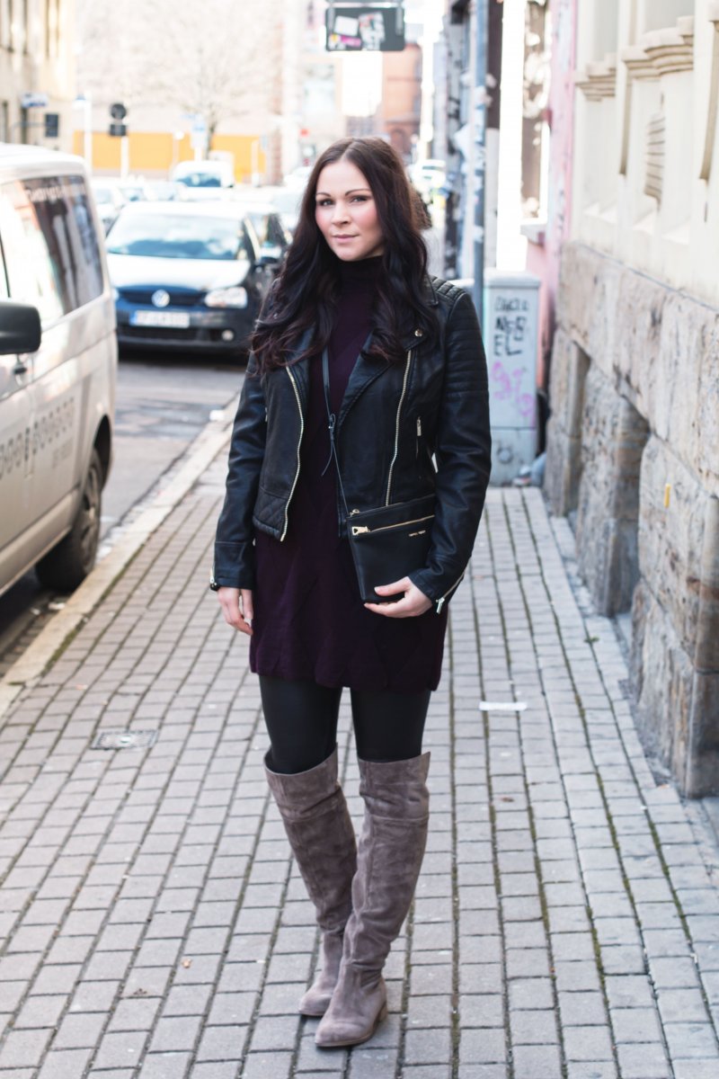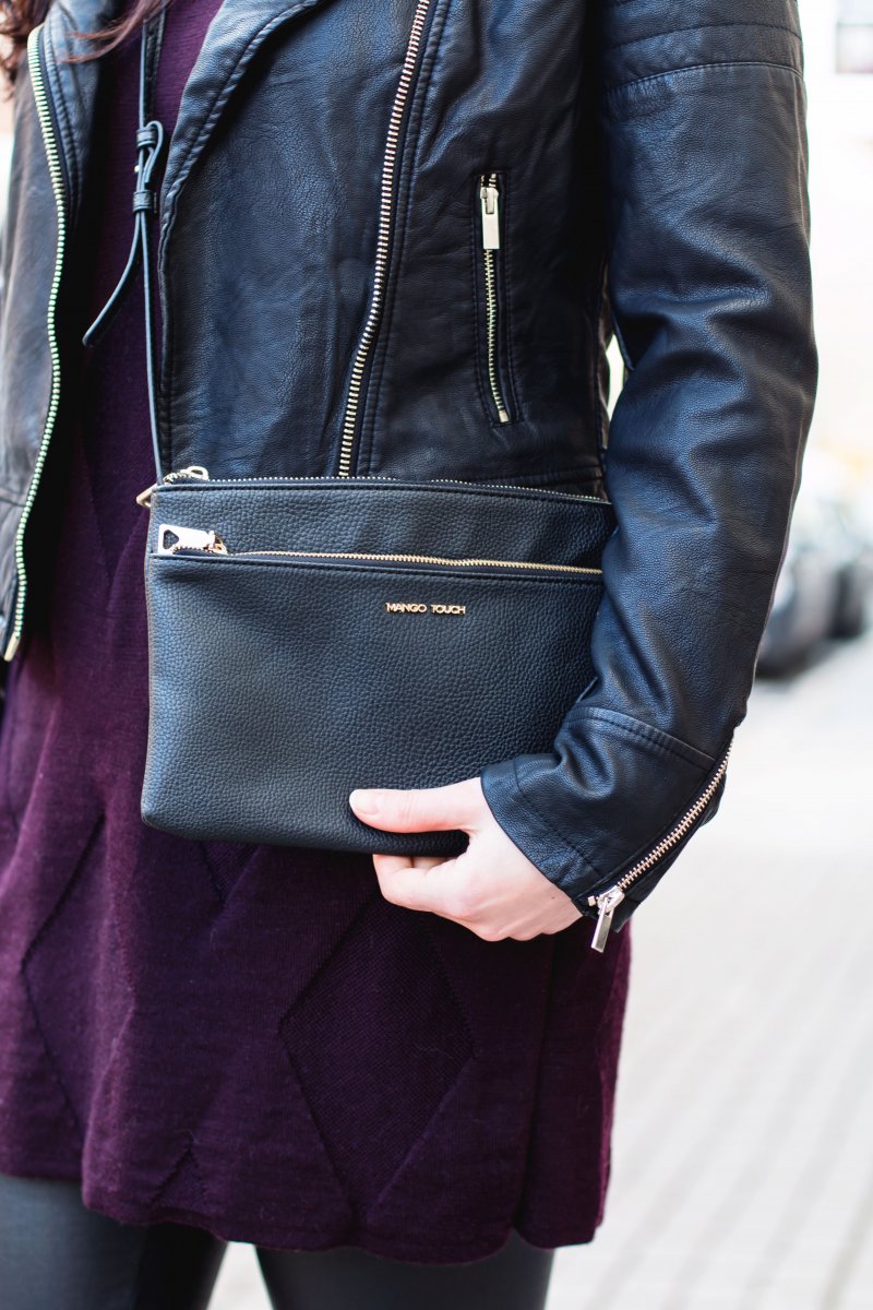 Weil es bei uns die letzten Tage so kalt war, habe ich über den warmen Pullover noch meine Lederjacke gezogen. Diese ergänzt das Outfit optimal und greift die Lederoptik der Leggings wieder auf.