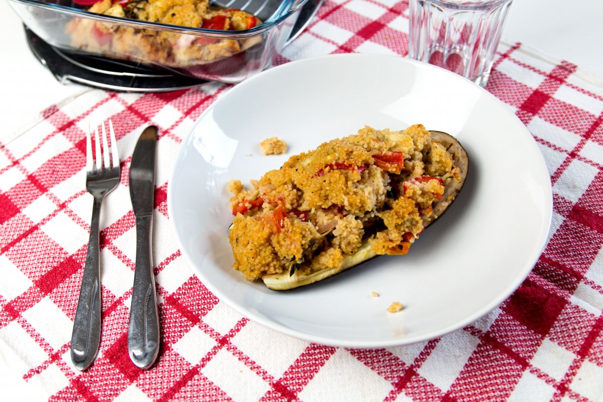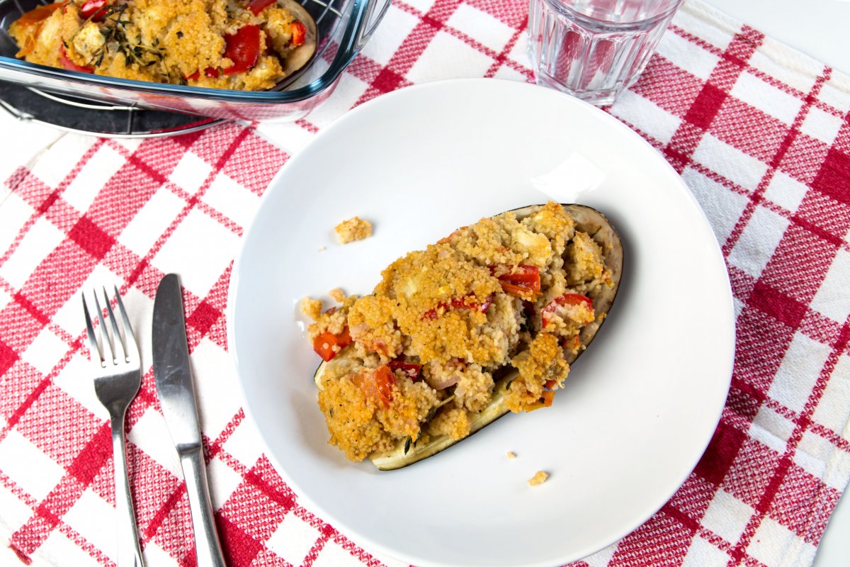 Heute wird wieder gekocht. Diesmal bereiten wir zusammen ein super leckeres Auberginen Rezept vor. Ich habe mich für überbackene Auberginen entschieden, die ich gesund und vegetarisch mit Tomaten-Paprika-Couscous in Szene gesetzt habe. Überbacken schmecken mir Auberginen einfach am besten. Die überbackenen Auberginen bereiten sich super einfach zu und eigenen sich auch sehr gut als leichtes Sommergericht. Ich wünsche euch ganz viel Spaß beim nach kochen. Lasst mich wissen ob es euch geschmeckt hat!