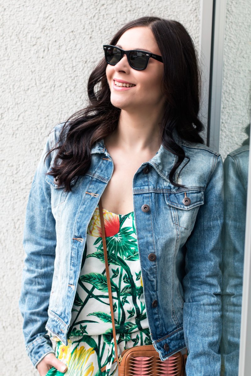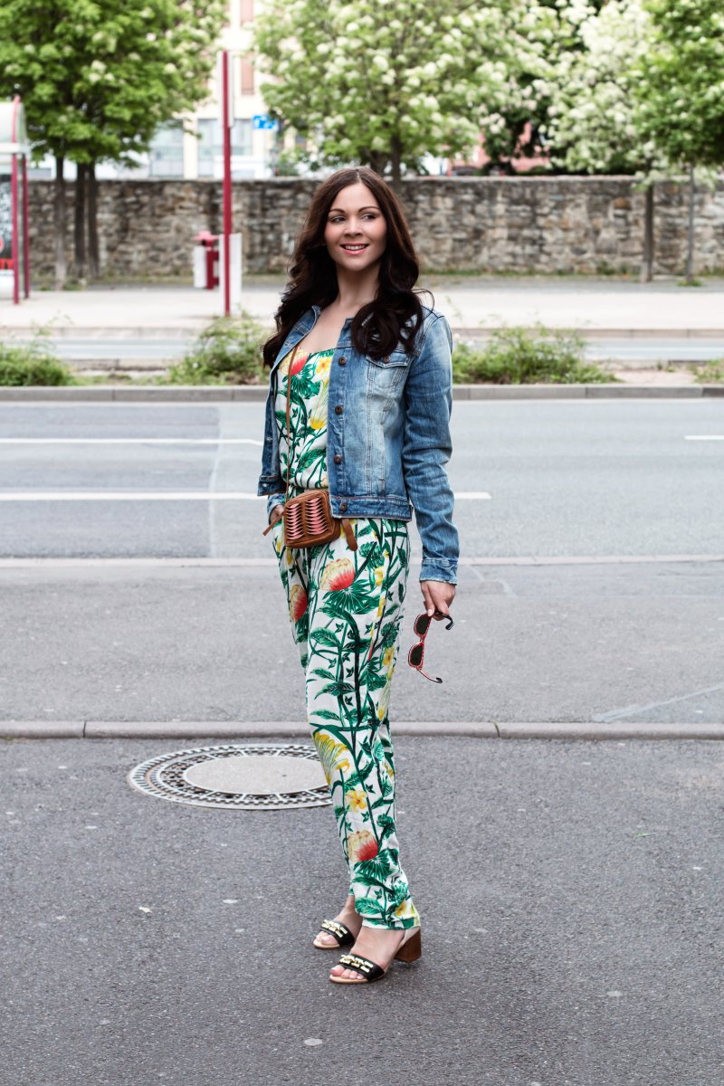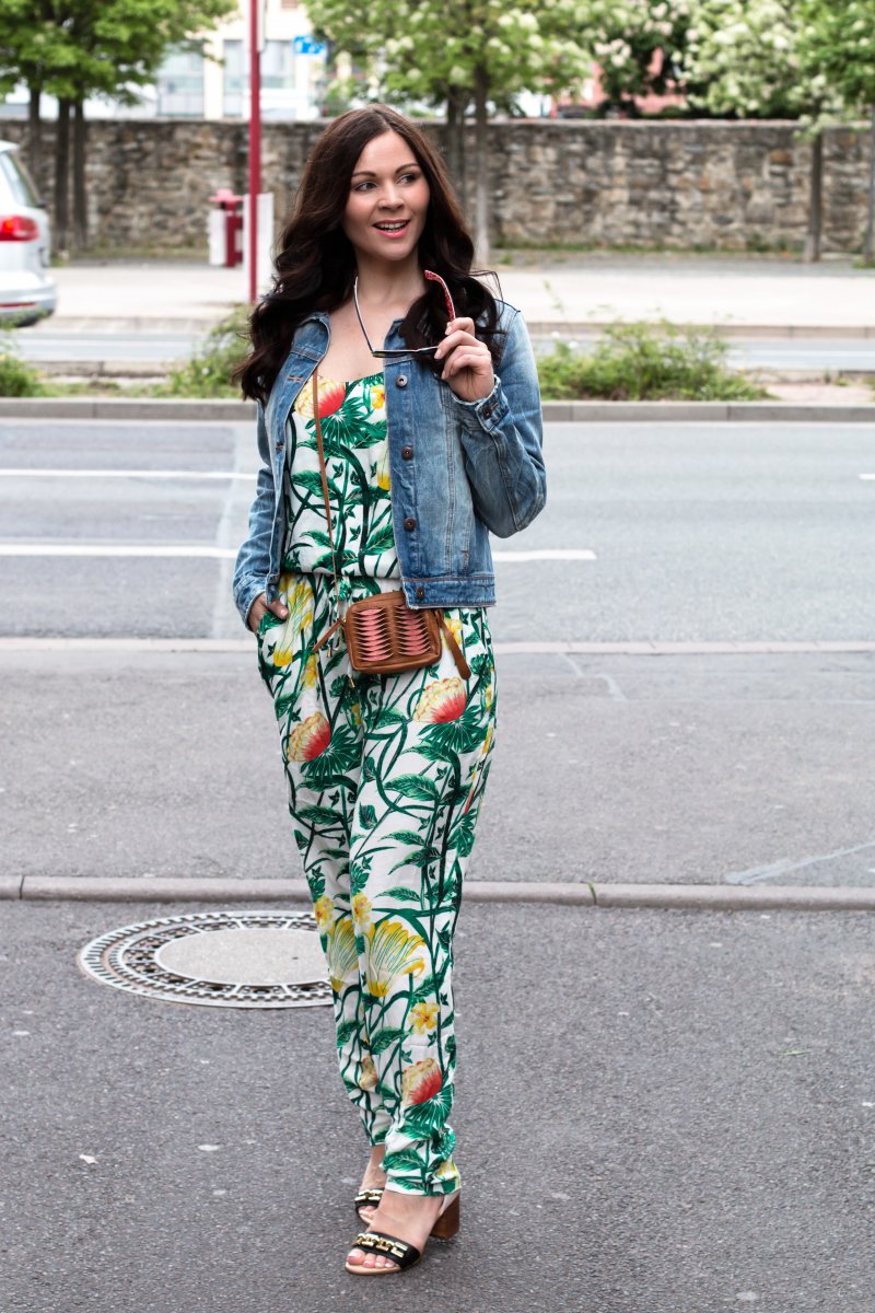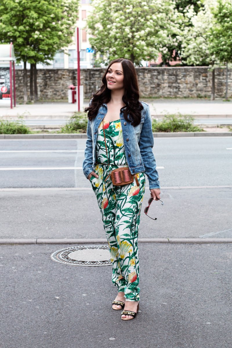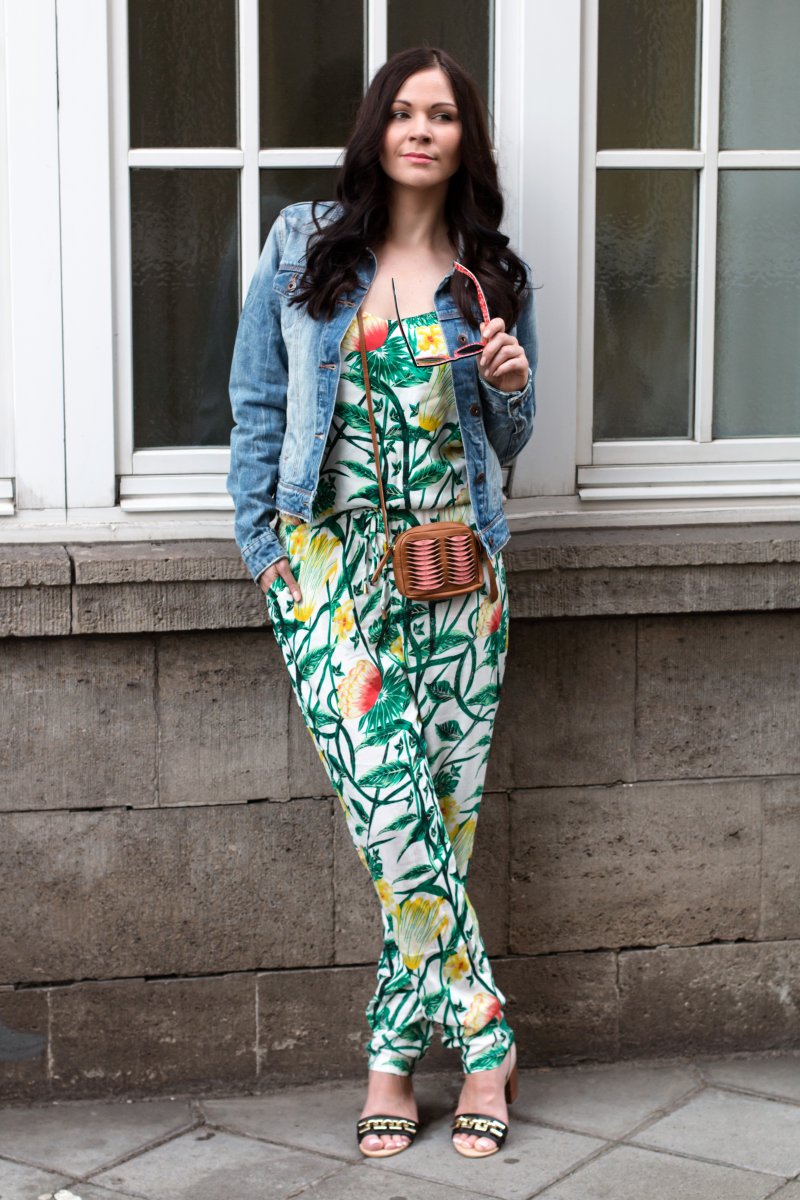 Das ist ja witzig, letzte Woche haben wir auch einen Look geshootet mit Jeansjacke und Tropical Jumpsuit – der ist aber von Adidas! Sieht toll aus!