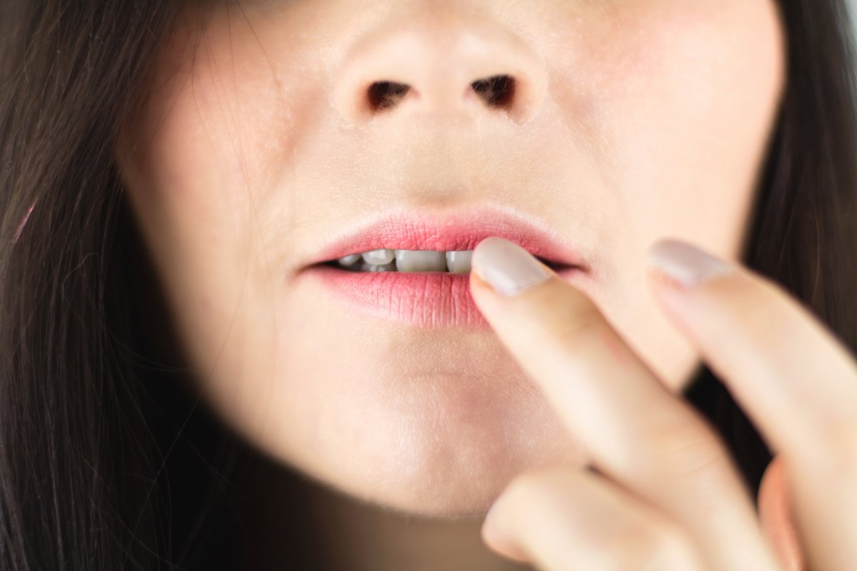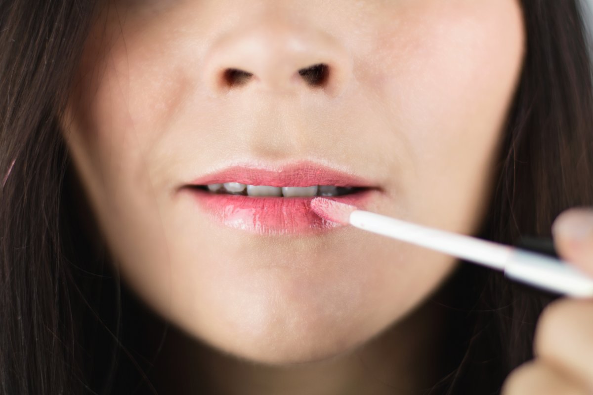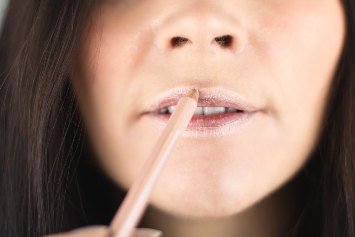 Den Lippenstift trage ich nur am inneren der Lippen auf und verblende ihn, zum Äußeren der Lippen hin, mit meinen Fingern. Auf den Lippen entsteht dadurch ein sanfter Verlauf.