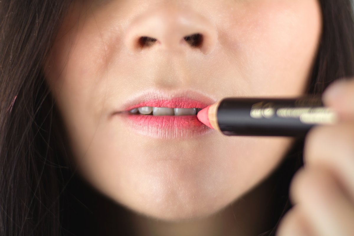 Zuerst tragt ihr auf eure Lippen einen Pflegestift auf. Dann nehmt ihr euch einen hautfarbenen Kajal oder Lippenkonturstift zur Hand. Meiner ist von P2 ein Intensive Kohle Eyliner den ich schon ewig zu Hause habe. Tragt diesen an der äußeren Lippenkontur auf und verblendet die Linie mit euren Fingern.