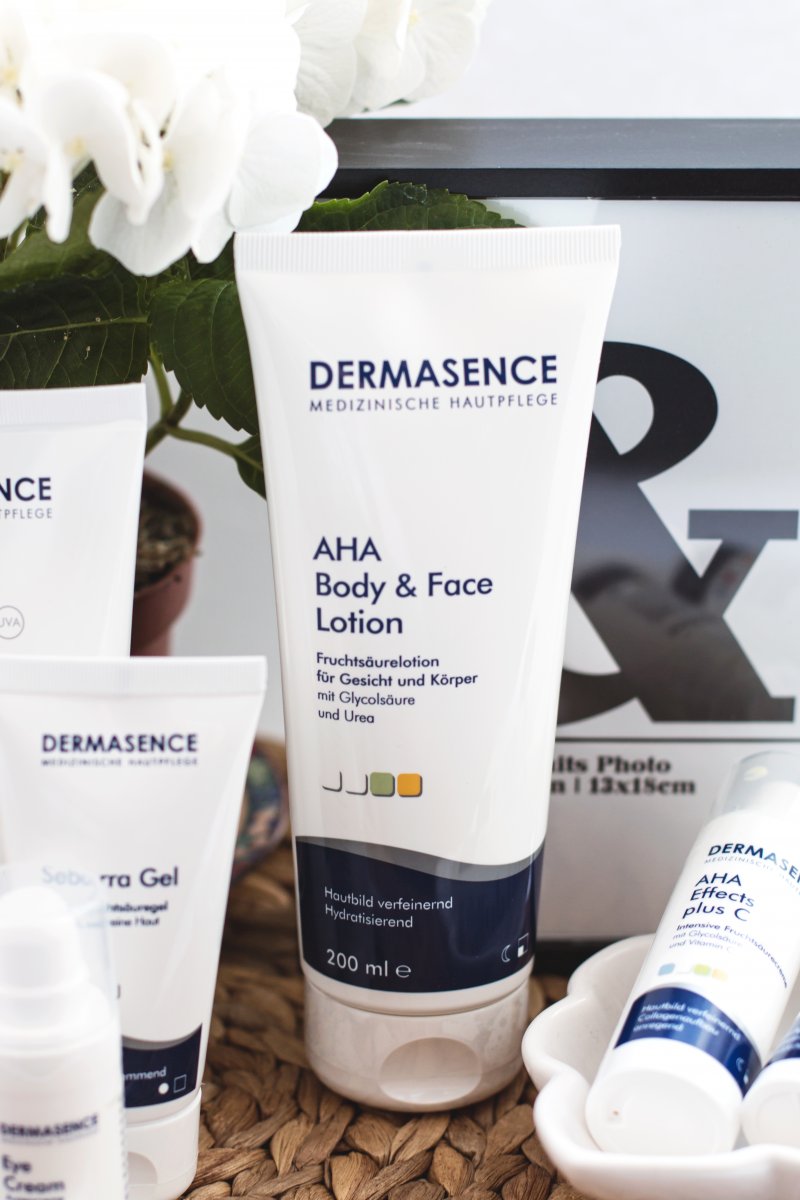 Eine 2-in-1 Pflege für Gesicht und Körper. Von solchen Pflege bin ich eigentlich kein großer Fan. Die Dermasence AHA Body & Face Lotion habe ich aber trotzdem getestet. Ich verende sie nur für den Körper. Vor allem nach dem Sonnenbad ist sie eine angenehme Pflege. Sie spendet Feuchtigkeit und hilft sogar bei zu Akne neigender Haut.