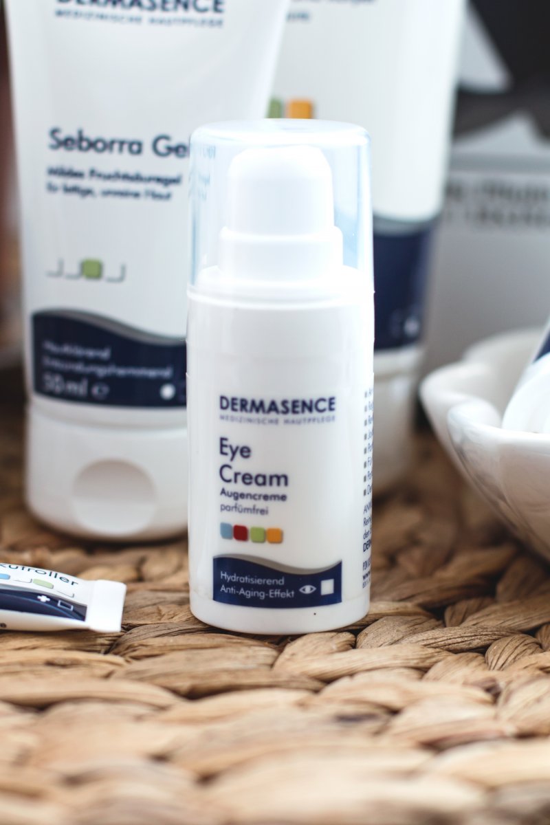 Ich verwende seit Jahren Augencremes, weil meine Augenpartien trocken sind. Im Gegensatz zu meiner restlichen Gesichtshaut benötigt die Partie um meine Augen eine extra Portion Pflege. Die Dermasence Eye Cream Augencreme ist speziell für empfindliche, fettarme Augenpartien und wirkt Fältchenbildung entgegen. Die Creme ist sehr reichhaltig und zieht langsam ein. Eine ideal Pflege für den Abend. Ich trage die Augencreme jeden Abend im Augenbereich auf, so kann sie die Nacht über in meine Augenpartien einwirken.