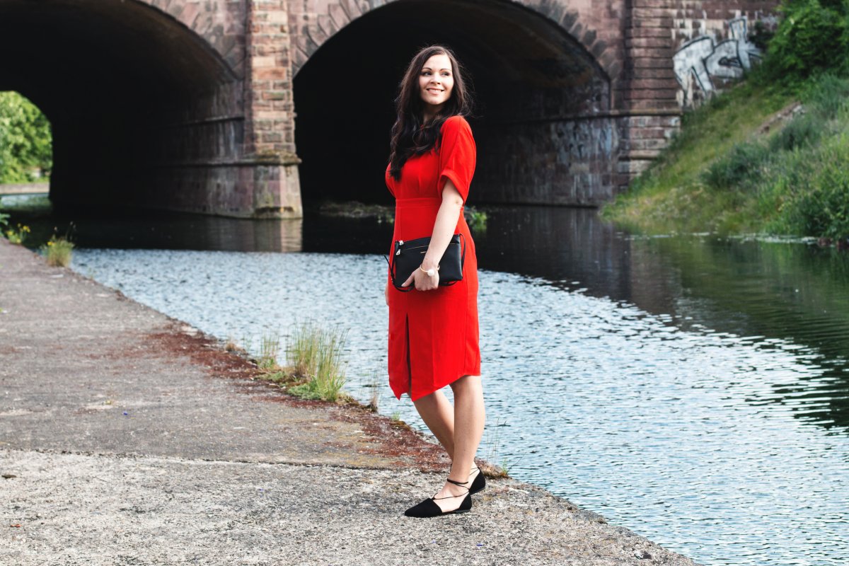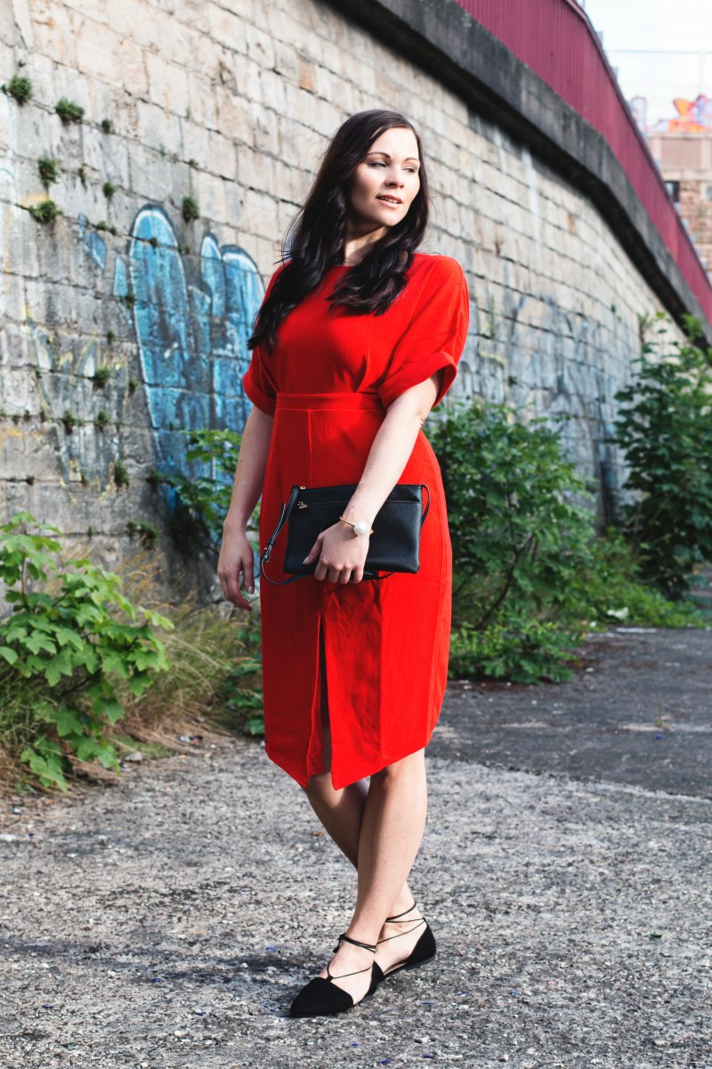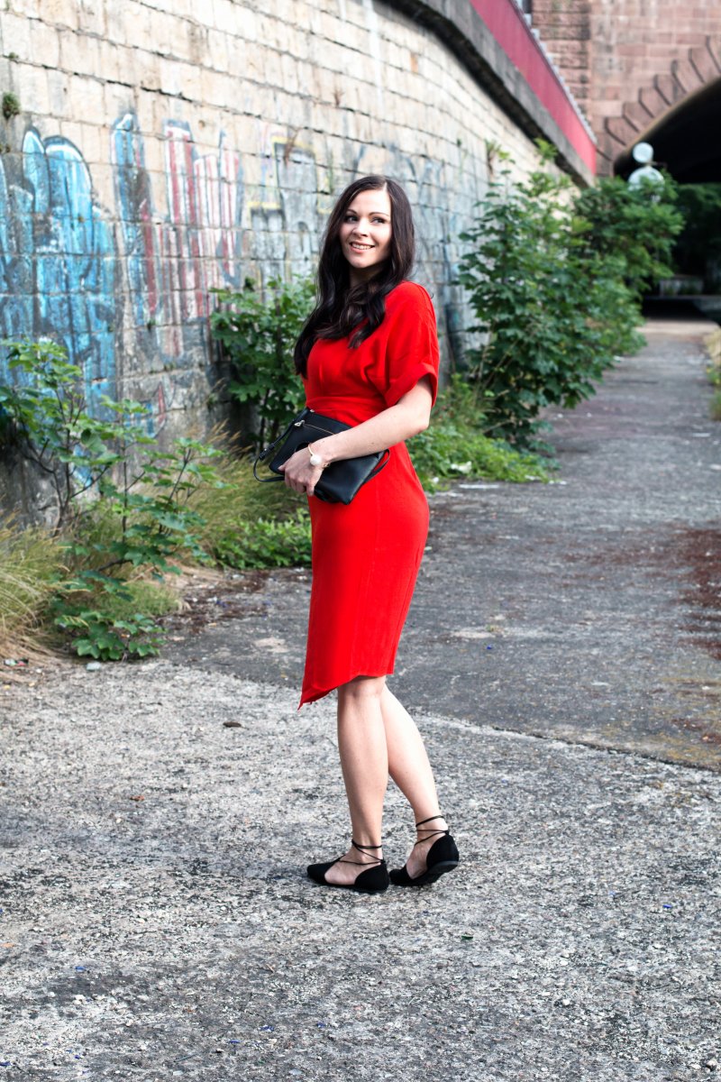 Moment einmal, das rote Kleid kommt euch bekannt vor? Genau, es sieht fast aus wie das Kleid das ich euch letzte Woche gezeigt habe. Nach rotem Kleid Nummer 1, folgt jetzt rotes asos Kleid Nummer 2. Diesmal in einer sehr eleganten Version und mit flachen Lace-up Flats Ballerinas kombiniert. Witziger Weise ist Kleid Nummer 2 auch von asos.