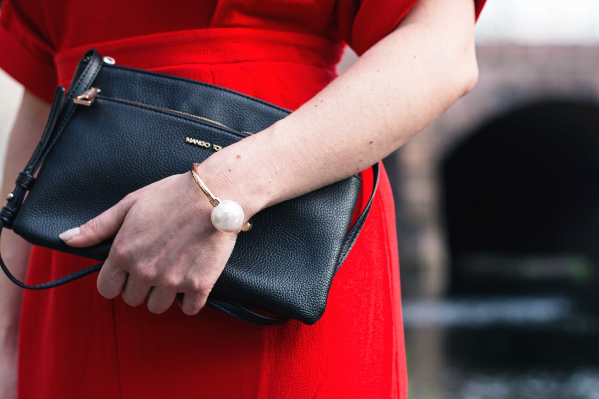 Das Rote Kleid kombiniere ich mit flachen Lace-up Flats und einer schwarzen Mango Tasche. Ein sehr klassischer Look, der durch den Schnitt des Kleides sehr elegant wirkte.